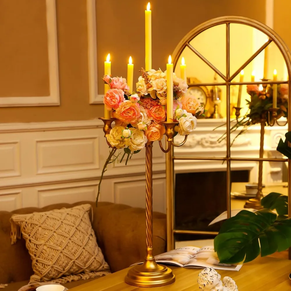 - Versatile Centerpiece: with 5 arms, this tall candelabra candle stand can hold candles, flowers, crystal ornaments, and other accessories to create a stunning centerpiece