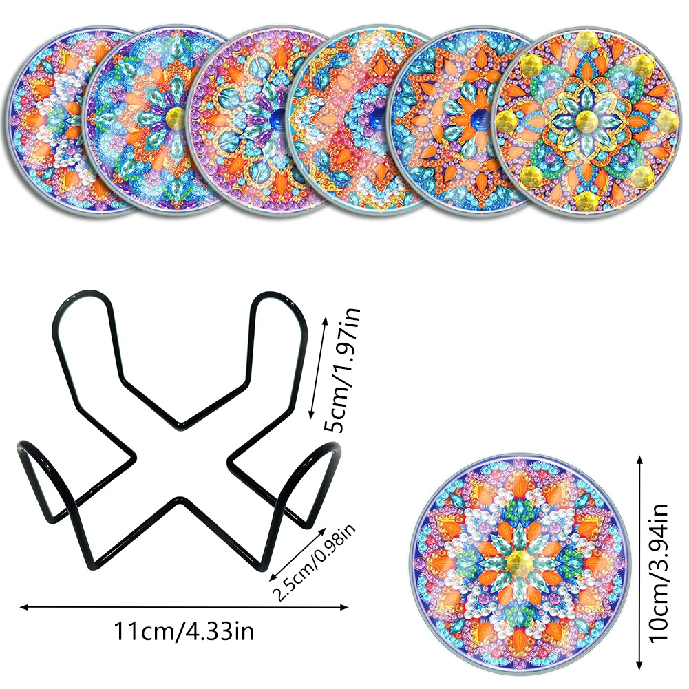 6pcs Diamond Painting Coasters Kit Classic Mandala DIY Diamond Art Crafts Modern Animal Cartoon Waterproof Holiday Christmas