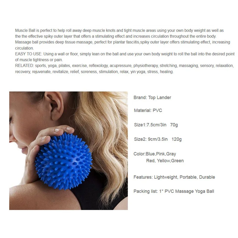 7.5cm PVC Musle Roller Ball Spinal Massage Relieve Sore Muscle Yoga Fitness Hand Training Physiotherapy Anti-Stress Ball Fitball