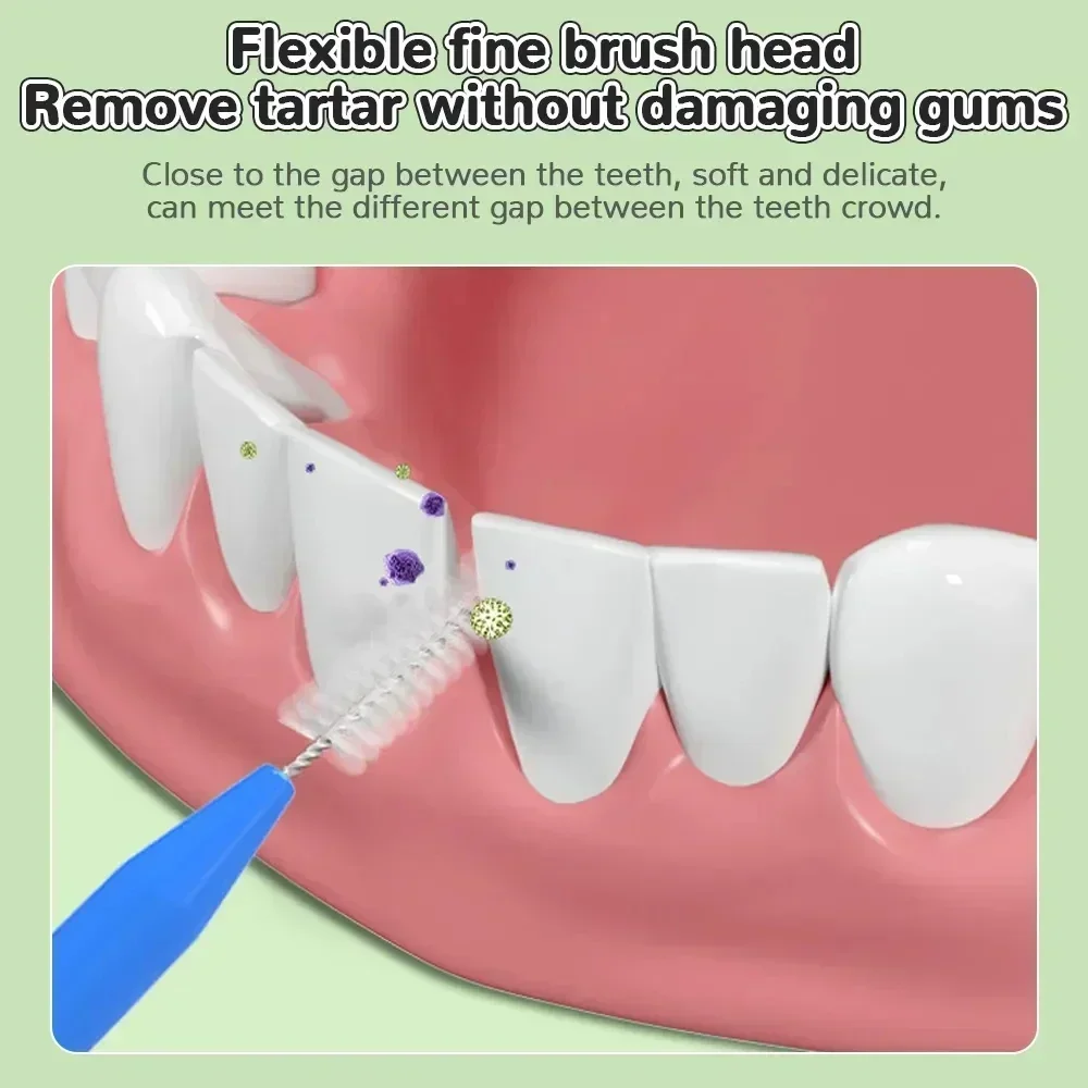 1. The interdental brush enjoys bristles that are soft and delicate and won’t harm the gum, and elastic and durable steel wire.
