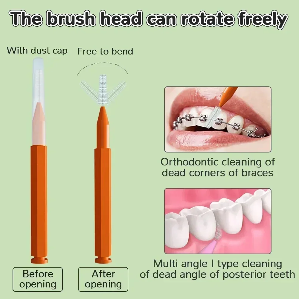 80/160 Pcs/Box I-type push pull interdental brush 0.6-1.5Mm Cleaning Between Teeth Oral Care Orthodontic I Shape Tooth Floss
