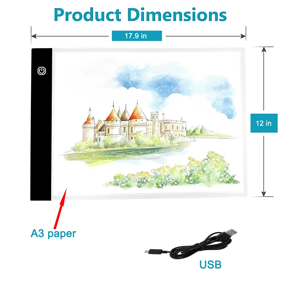 A3 Copy Drawing Board USB Powered LED Light Copy Drawing Board Pad Eye Protection Graphic Art Light Pad for Animation/Stenciling