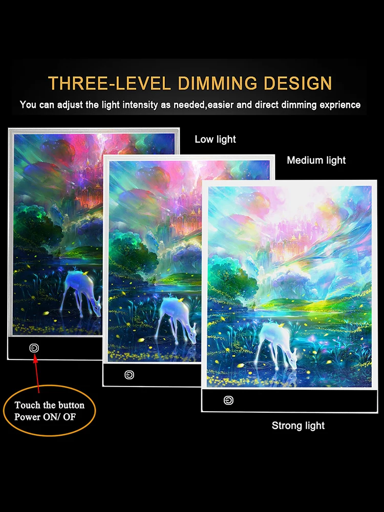 A3 LED Light Copy Drawing Board Pad Dimmable LED Copy Drawing Tablet Ultra-Thin Graphic Art Light Pad USB Powered Eye Protection Children Learning Educational Tool for Tattoo Drawing Streaming Sketching Animation Stenciling Feature: 1. Suitable Size: The copy drawing board is designed to accommodate most sizes of diamond drawing, with an illuminating area of 11.8″ x 15.7″. It provides ample space for your artwork and allows for easy tracing and sketching. 2. Eye-Protection Technology: Powered by USB (comes with a 1.5m/59in USB cable), the led light copy drawing board pad features advanced eye-protection technology that prevents eye strain and fatigue even during prolonged use. Say goodbye to sore eyes after long hours of work. 3. Adjustable Brightness Levels: The touch-sensitive button allows you to switch on and control the brightness levels. Equipped with a USB cable, led copy drawing tablet can be powered through a USB power source, giving you flexibility in choosing your power supply. 4. High Transparency Acrylic Surface: The tracing copy board’s high-transparency acrylic surface ensures clear presentation of images projected by the light, making your work more visible and easier to trace. You’ll have a crisp and precise view of your artwork. 5. Wide Range of Applications: This trace light pad is not limited to diamond drawing. It is suitable for a variety of projects, including 5D diamond drawing, cross-stitching, templates, 2D animation, embossing, drawing, sewing, and more. Its versatility makes it a valuable tool for artists and crafters alike. Specification: