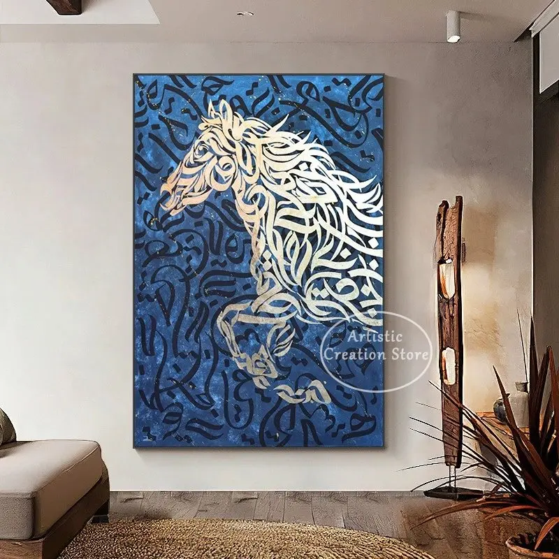 Abstract Arabic Calligraphy Horse Canvas Painting Muslim Wall Art Poster and Prints Luxury Wall Pictures Living Room Decoration