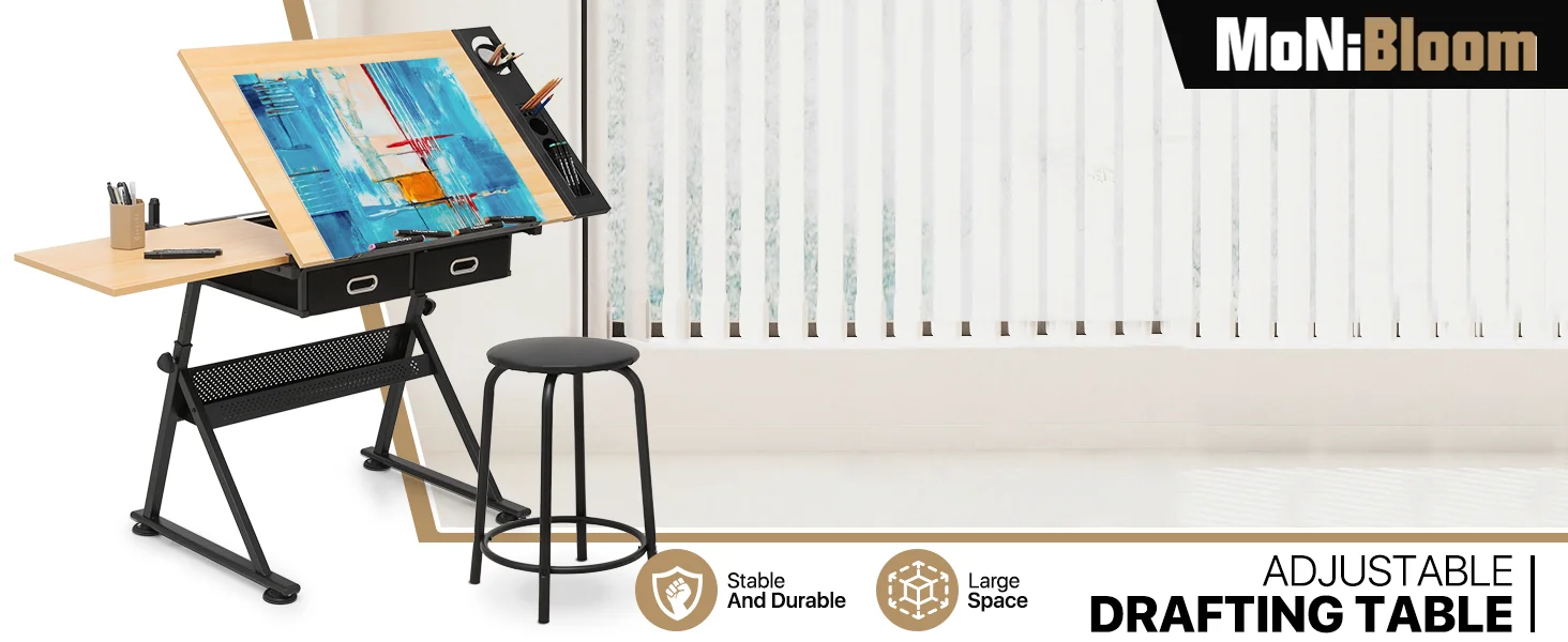 Adjustable Drafting Table & Stool Set with Storage, Versatile Art Desk and Craft Center Home Study Room Artist Desk
