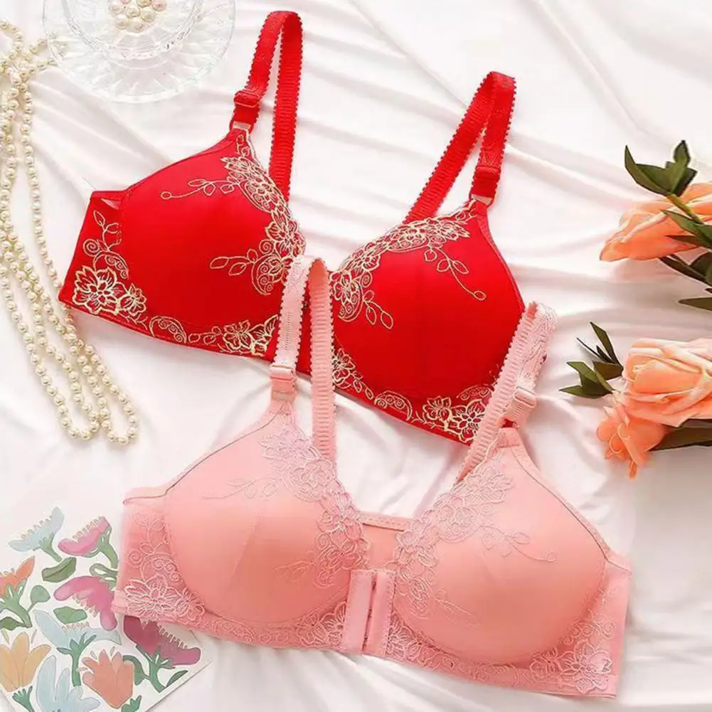 Adjustable Shoulder Strap Bra Supportive Lace Jacquard Trim Bras for Comfortable Lightweight Middle-aged Elderly Women