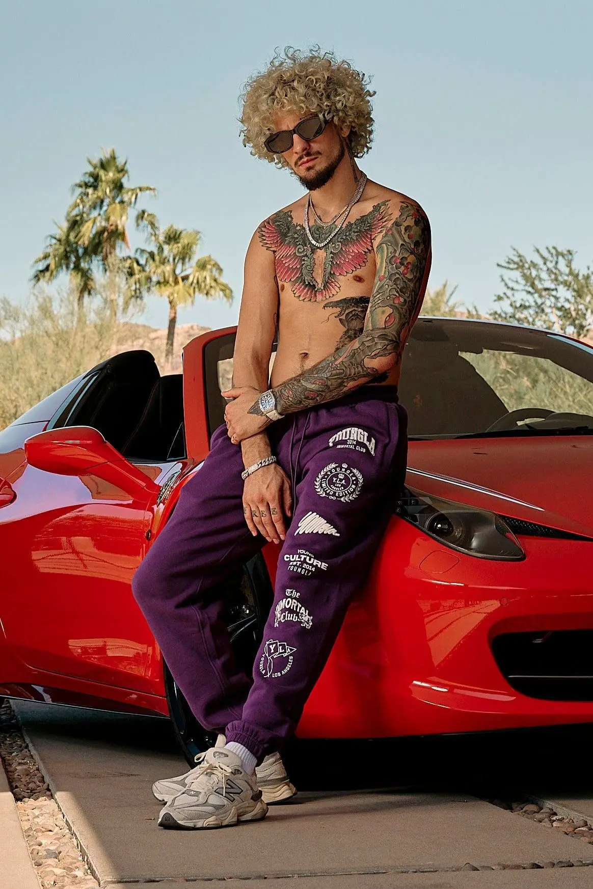 American Style YA Men Sweatpants Spring Autumn Jogger Gym Sports Fitness Cotton Printed Casual Pants Mid Waist Drawstring Pants