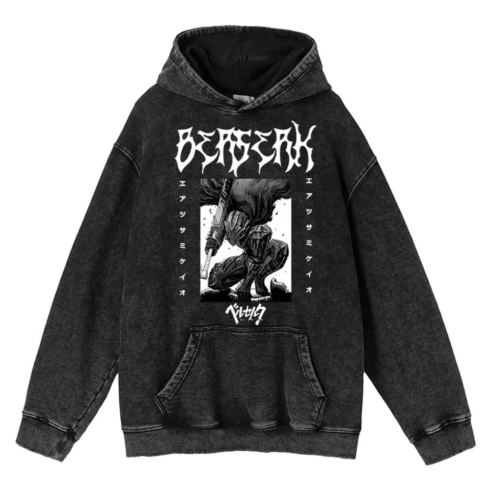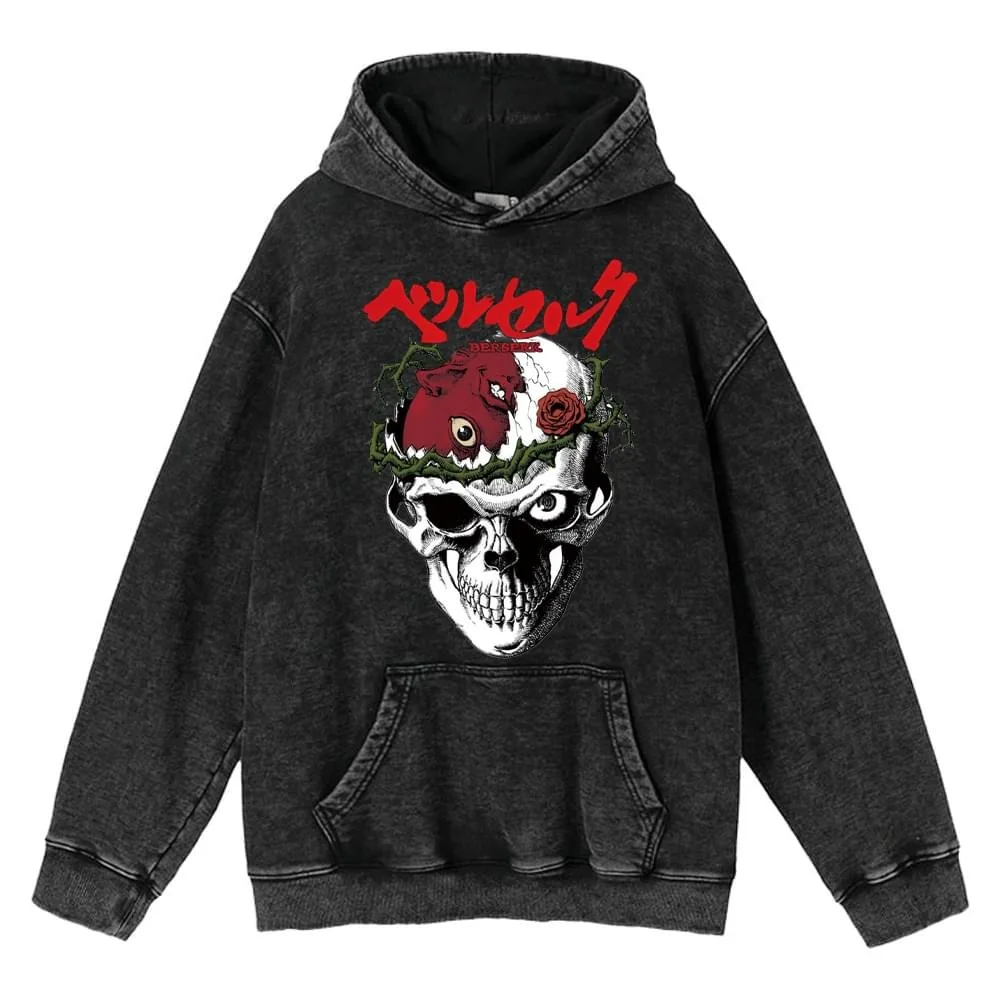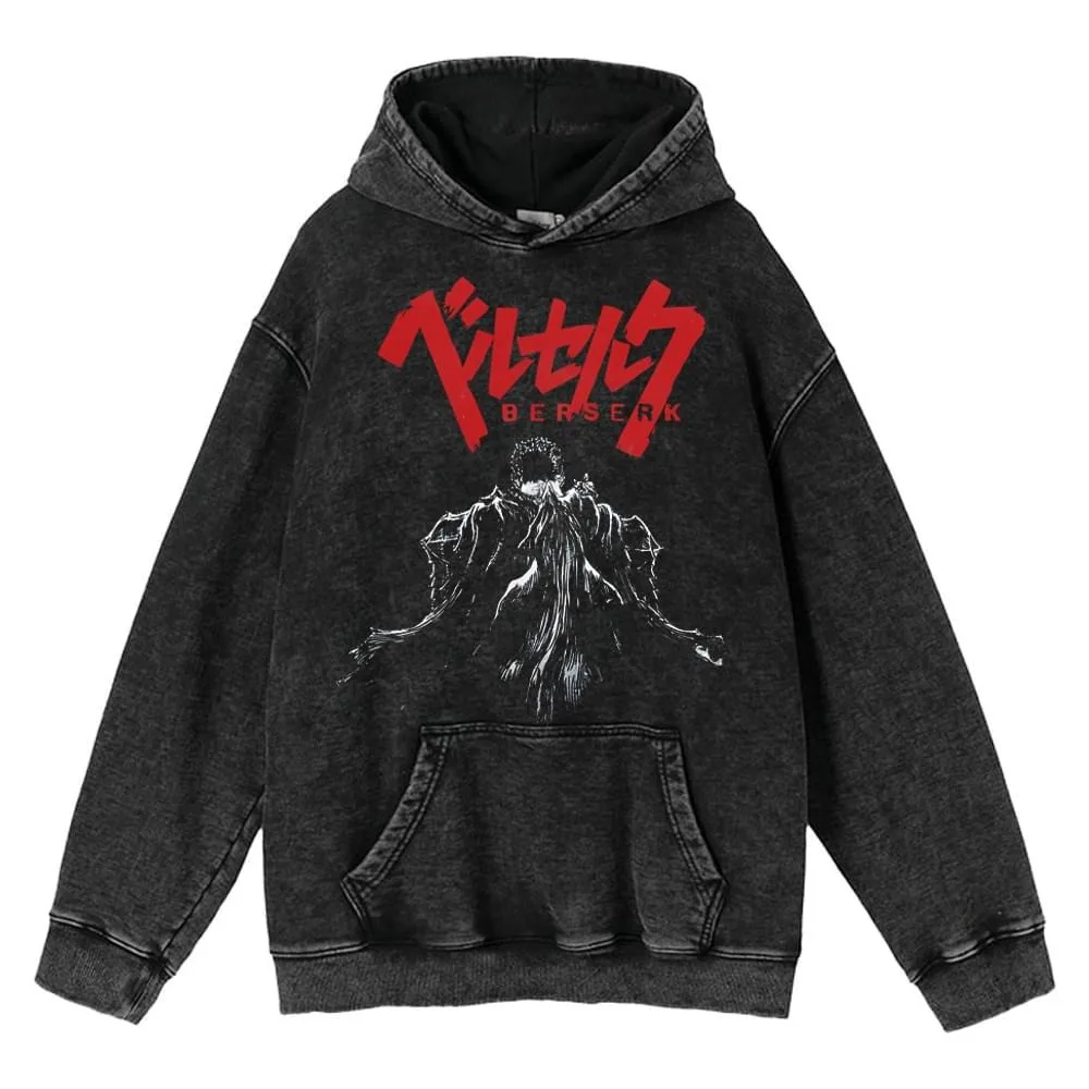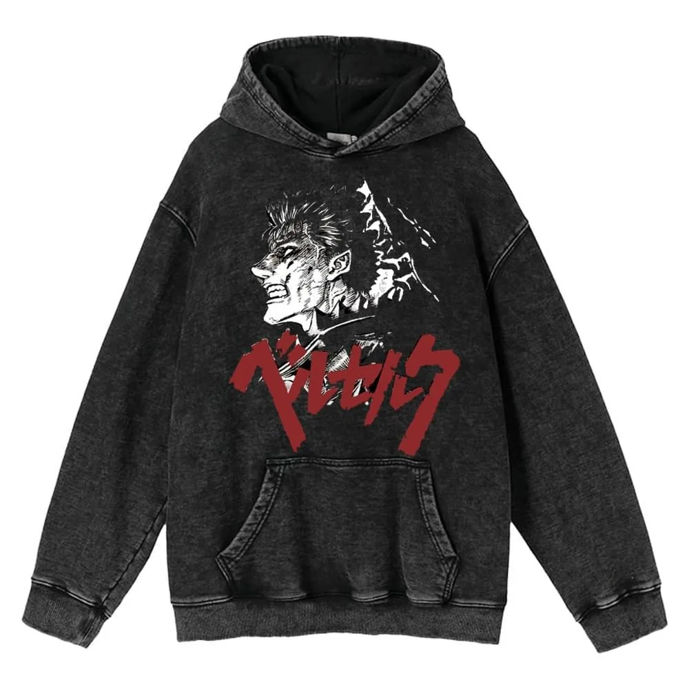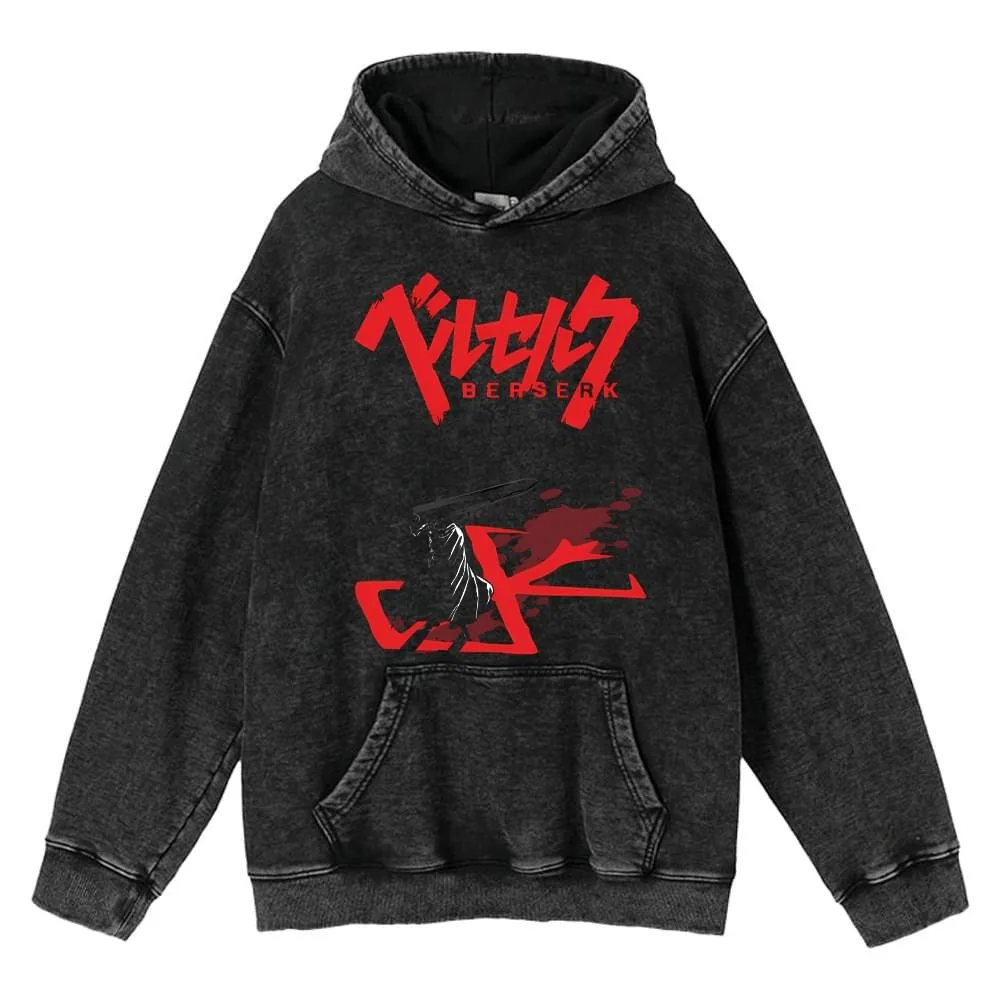 Anime Berserk Washed Hoodie Vintage Cotton Pullover Fashion Printed Long Sleeve Y2k Clothing Men Women Casual Hip Hop Sweatshirt
