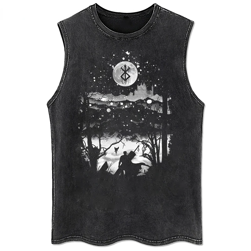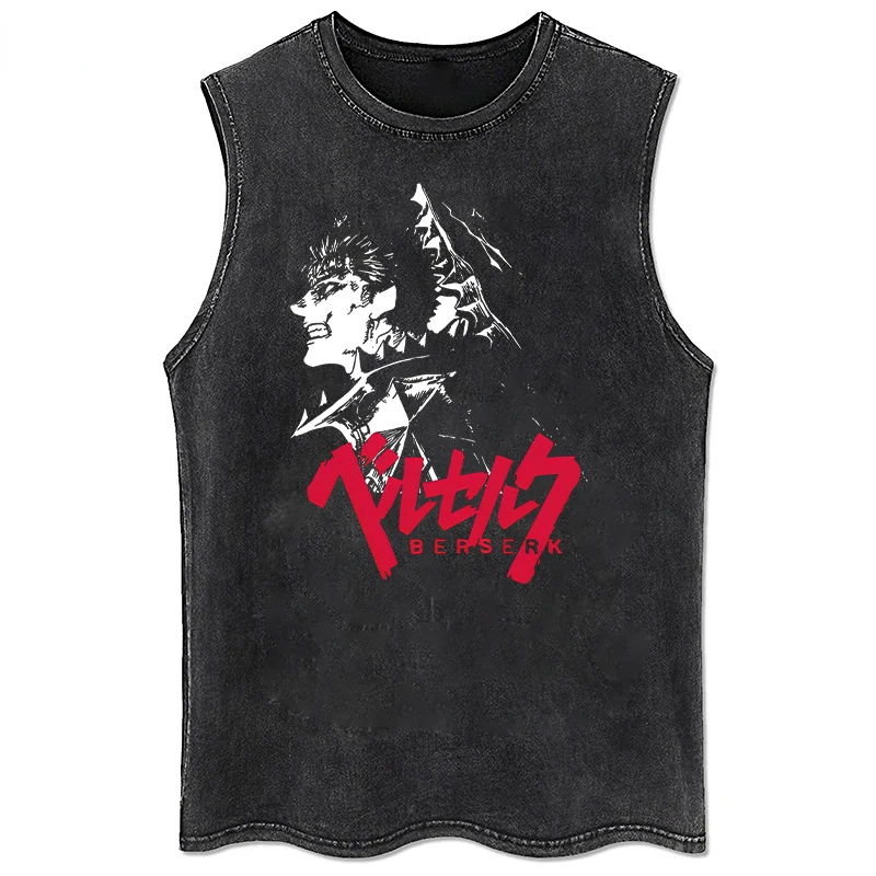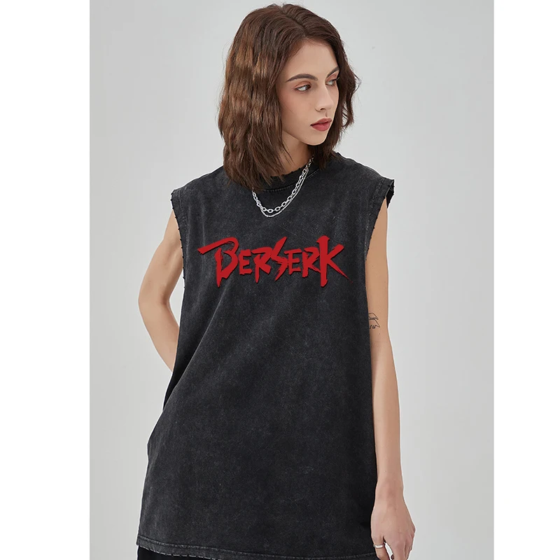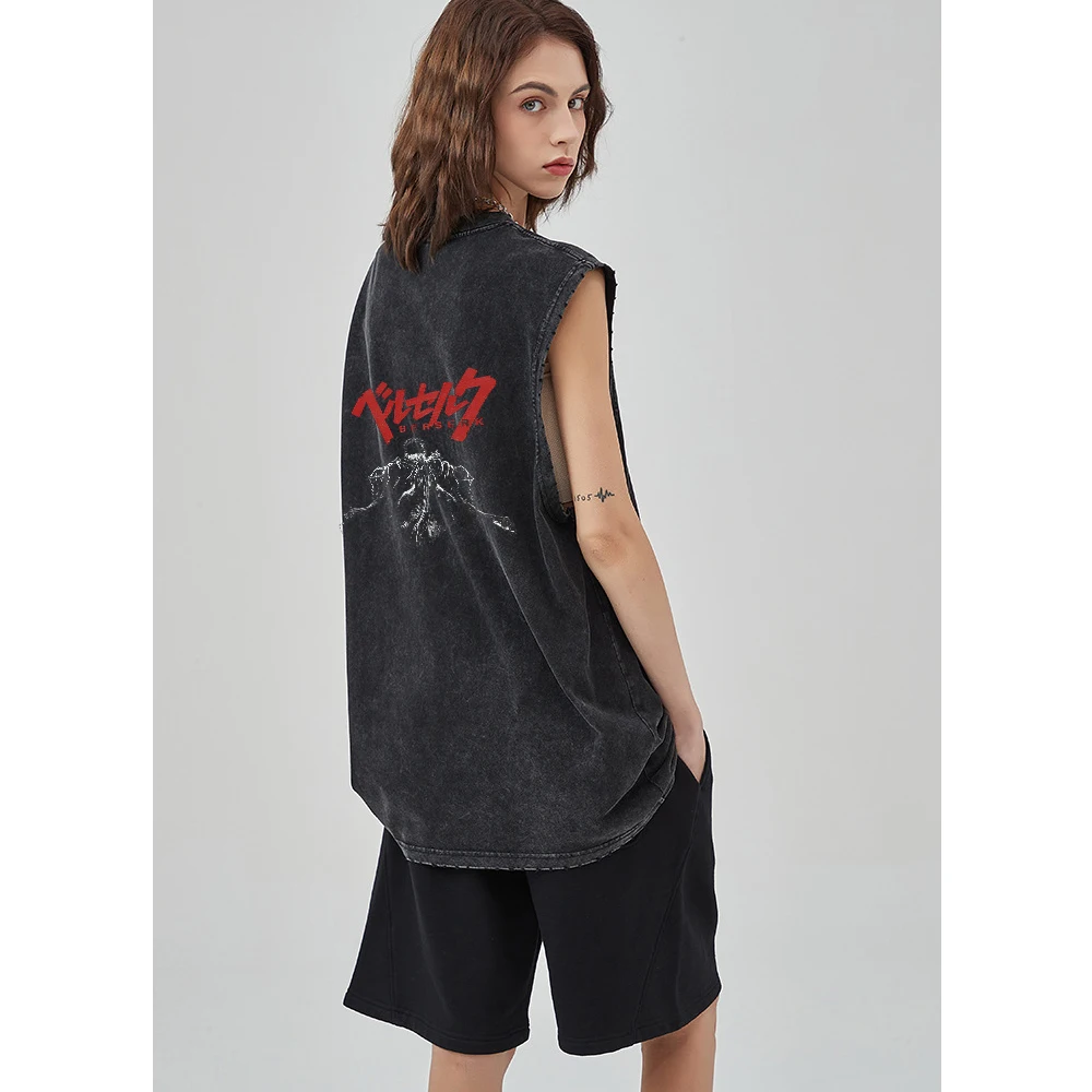 Anime Printed Washed Vest Retro Sports Fitness Casual Short-Sleeved Loose Large Size Summer