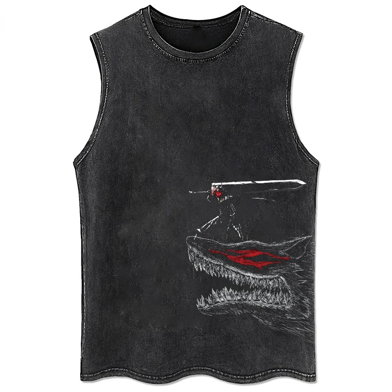 Anime Printed Washed Vest Retro Sports Fitness Casual Short-Sleeved Loose Large Size Summer