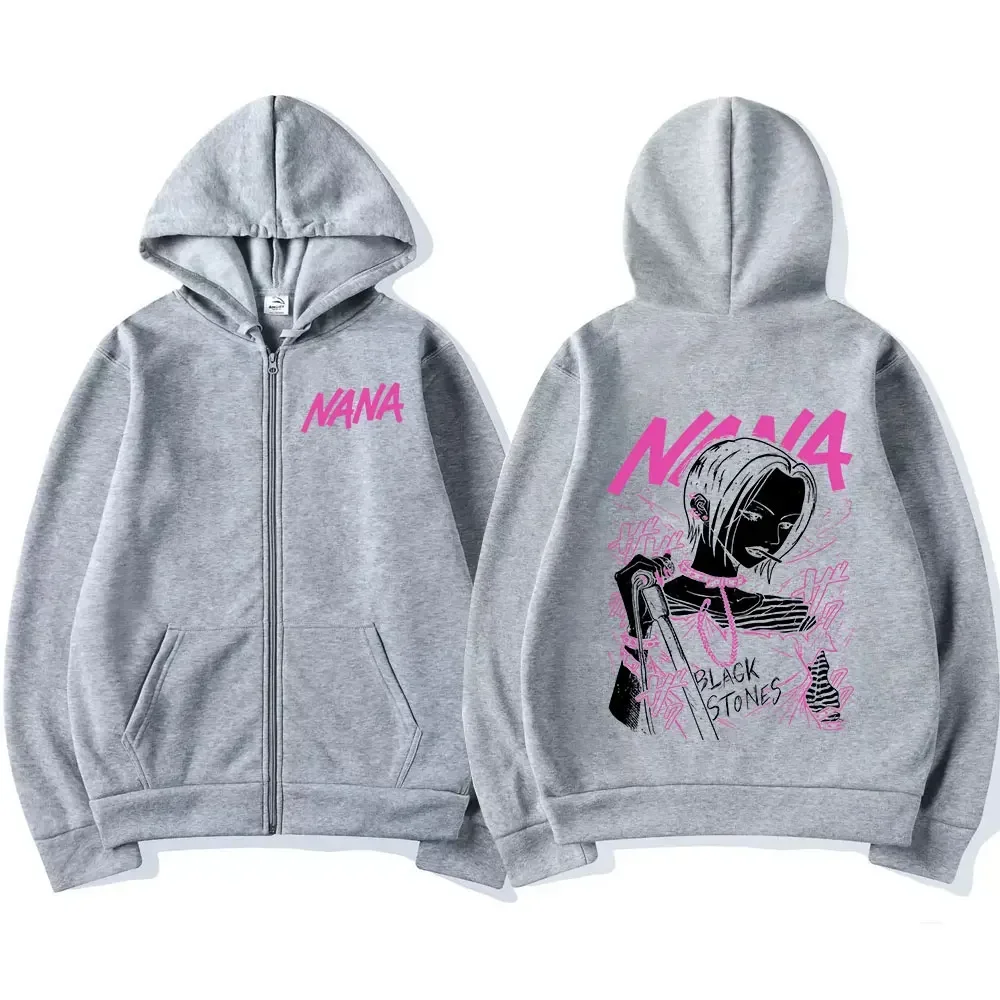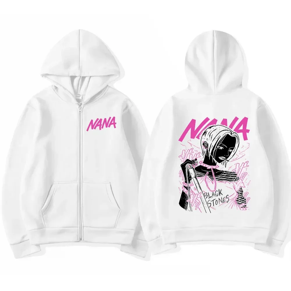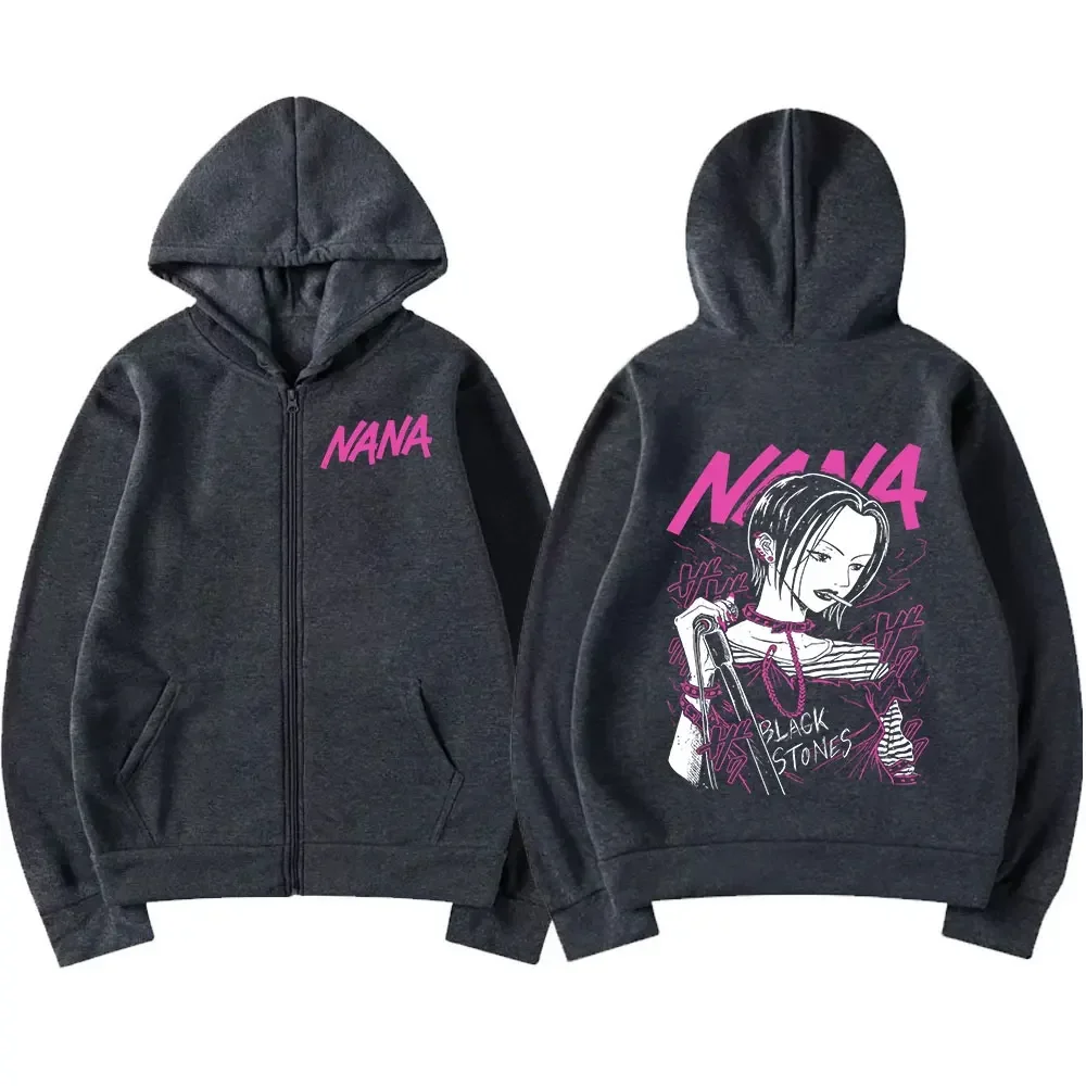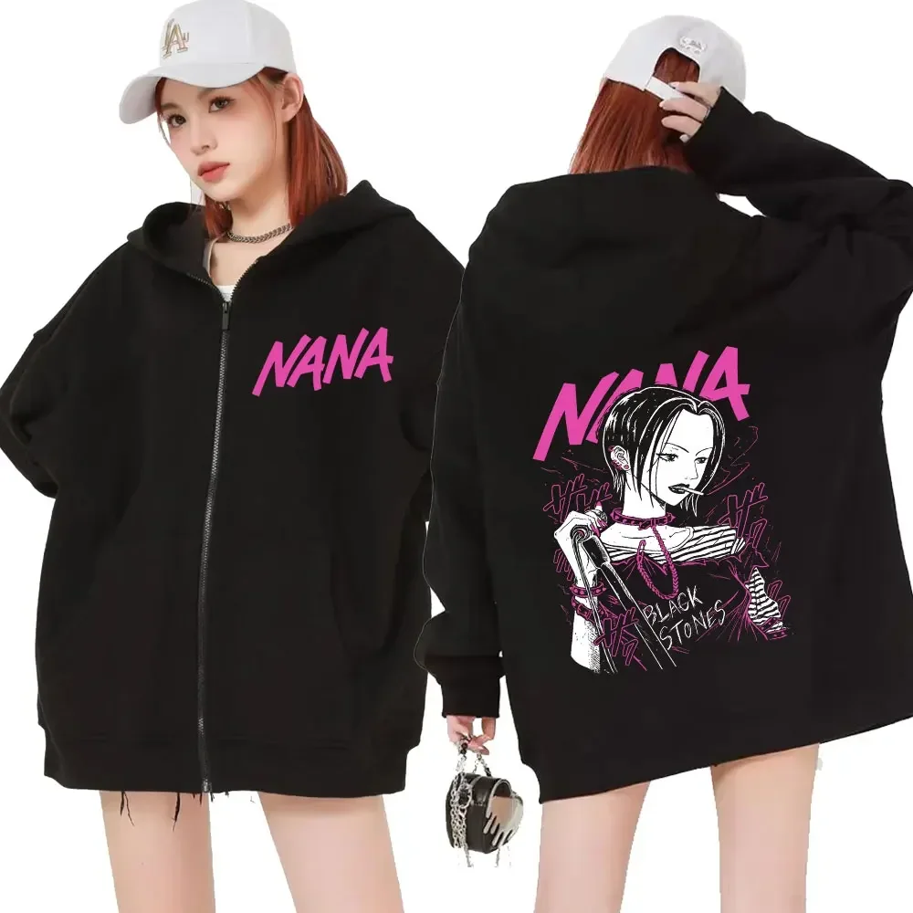 Anime Zipper Hoodie Jacket for Men and Women, Casual Oversized Sweatshirt, Vintage Zip Up Coats, Nana Osaki, Hot