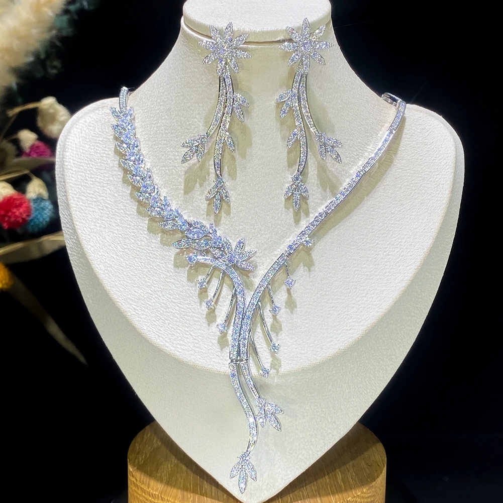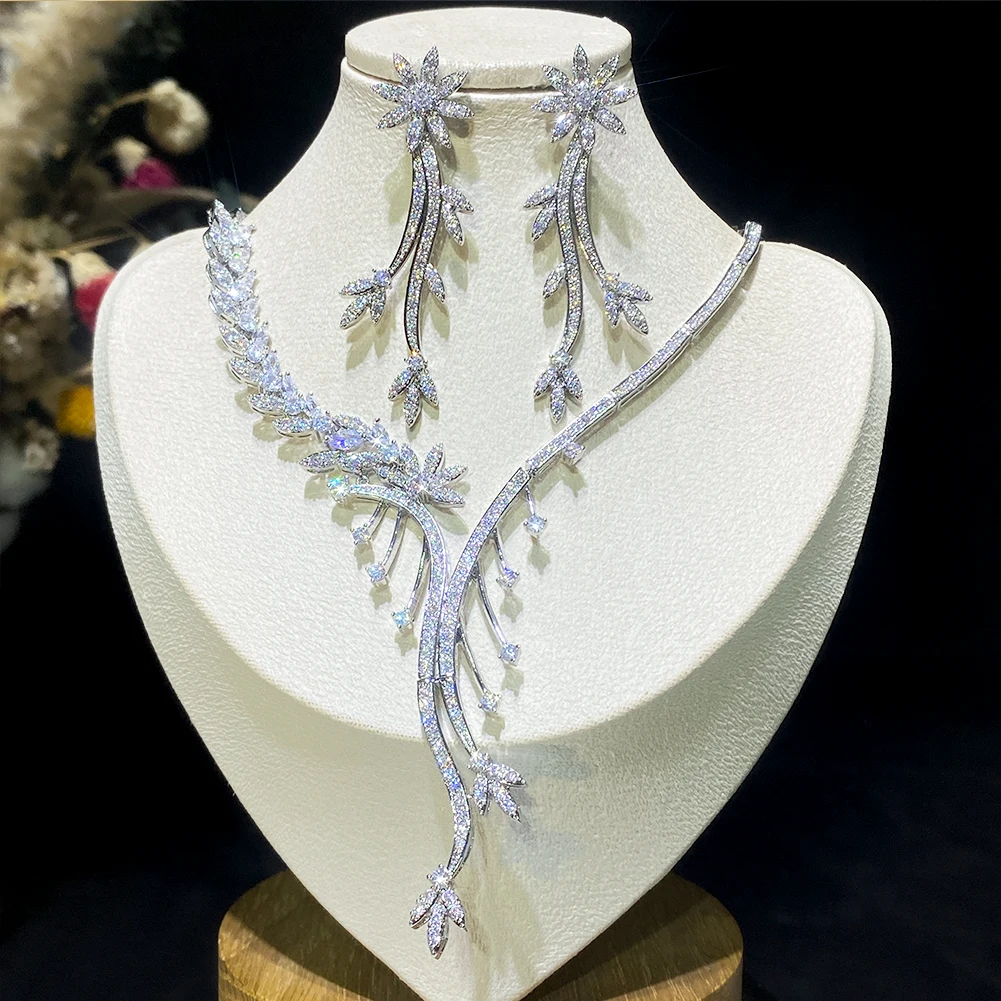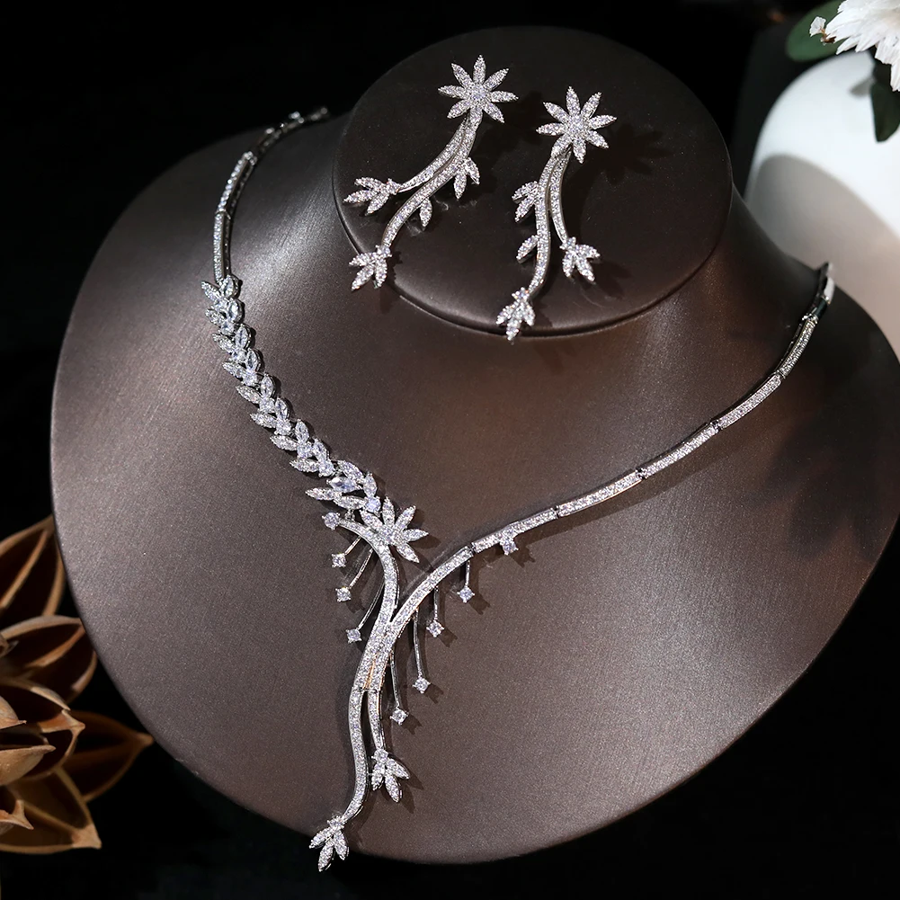 ASNORA Fashion Flower Shape Dangle Necklace Earrings For Women Bridal Wedding Accessories Crystal Cubic Zirconia Jewelry Sets