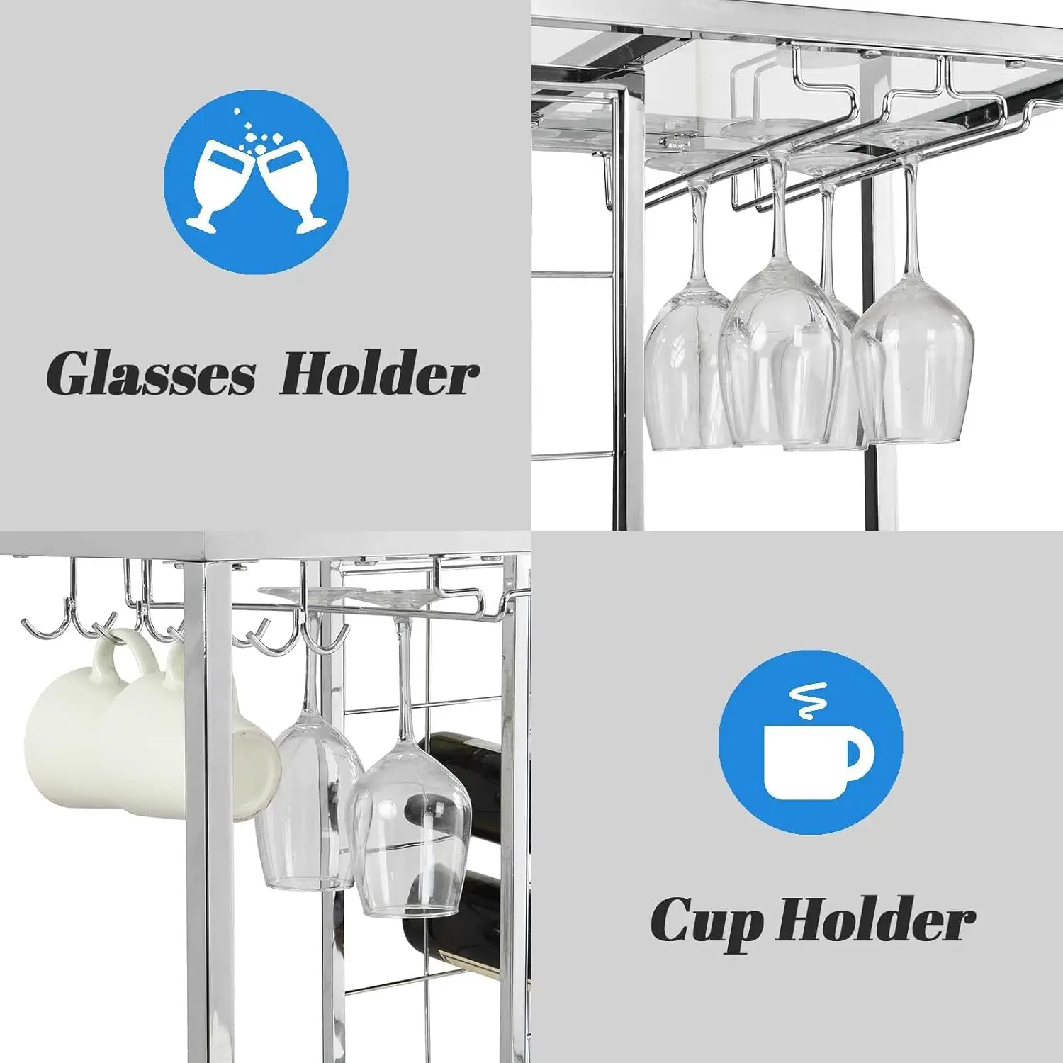 [Spacious Storage]-The Tabletop And 3-Layer Open Shelves Are Spacious Enough To Hold The Coffee Machine, Tray And Ice Bucket. And Equipped With 12-Bottle Wine Racks, 3 Rows Of Glass Holder And A Row Of Cup Holder For Easy Access.