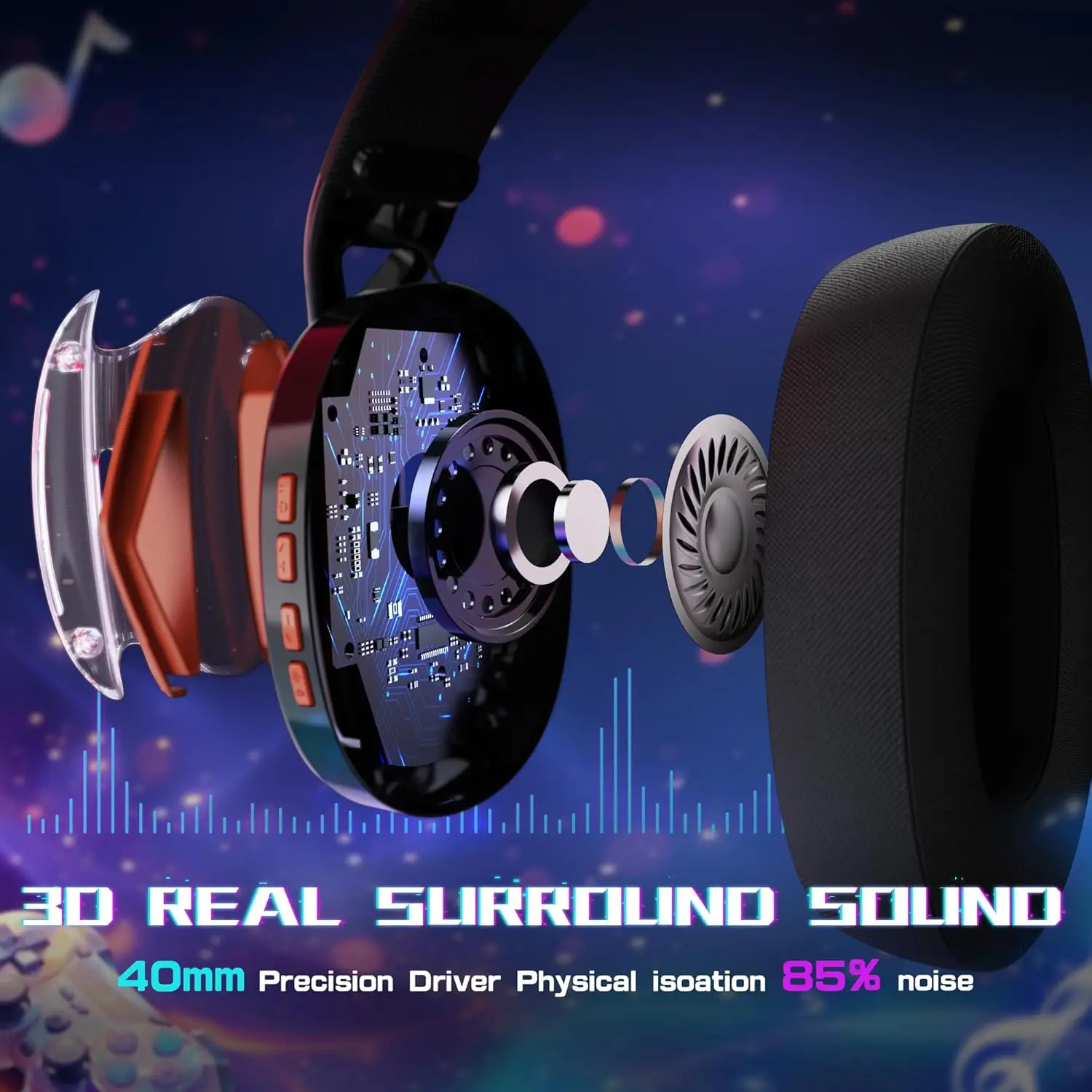 40mm high-quality driver speakers, paired with professional audio master debugging, can present excellent 3D surround effects of high, medium and low sounds without being muddy, providing deeper gaming immersion, a more dynamic listening experience for music/videos.