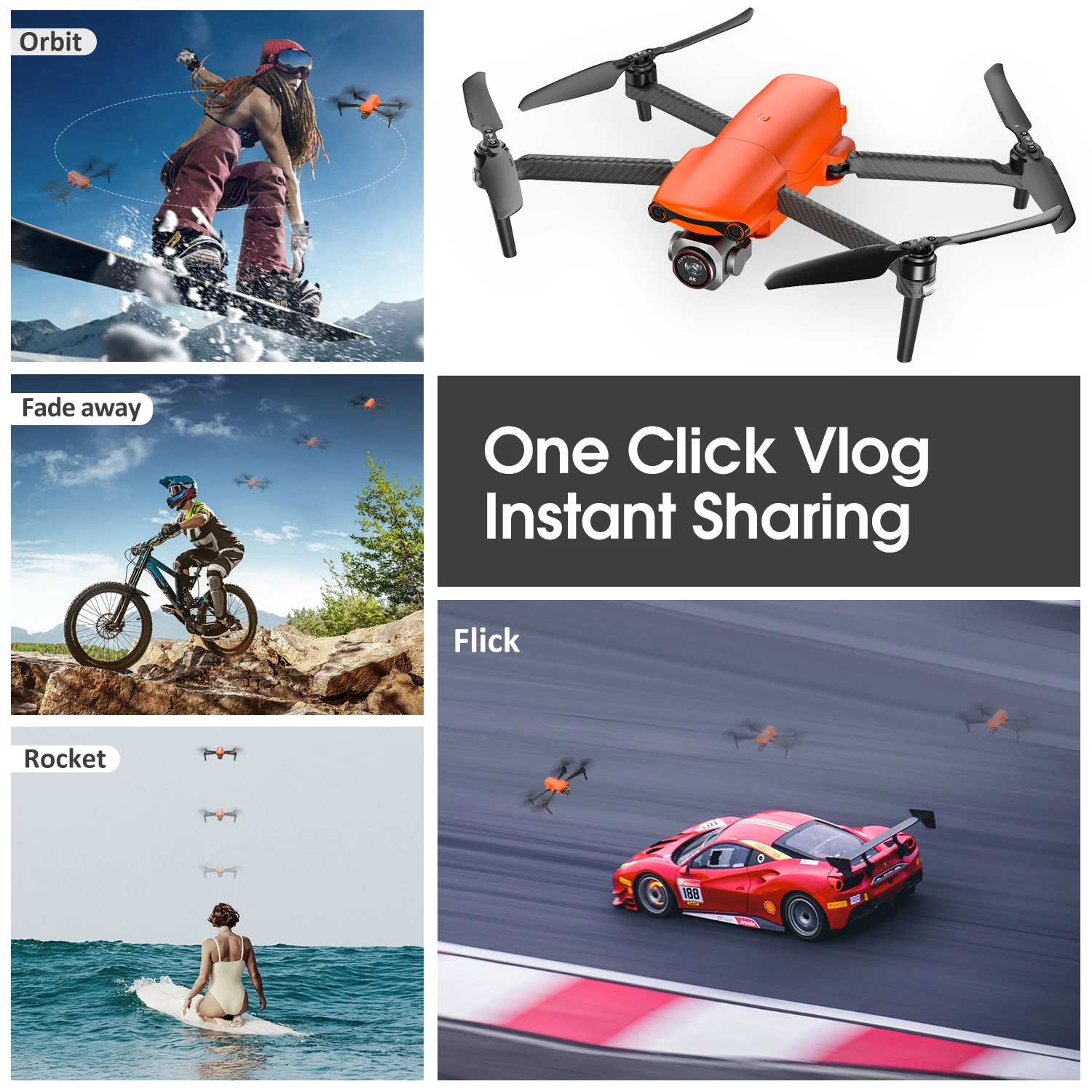 【EASY TO USE – ONE CLICK VLOG】 Autel lite+ quadcopter creates dramatic, professional-level shots with four automatic shooting modes at the touch of a button (Flick, Rocket, Fade away, Orbit). Add a soundtrack and filters in the Autel Sky app to make your video even more epic, allowing you to produce unforgettable results whether you're a veteran pilot or completely new to the drone game.