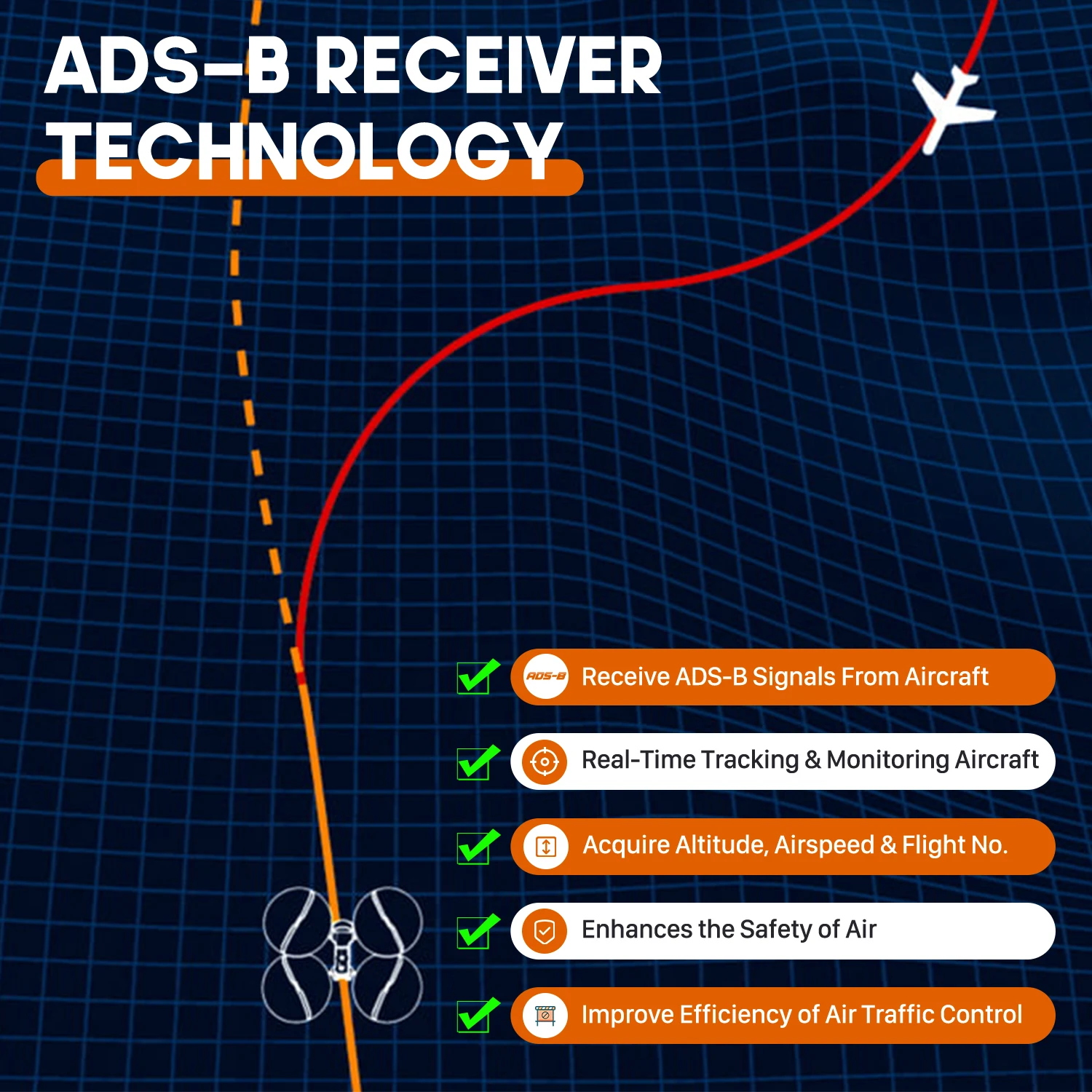 Detects the presence of any manned aircraft nearby emitting an ADS-B signal, giving the operator enough time to take evasive measures to avoid mid-air collisions.