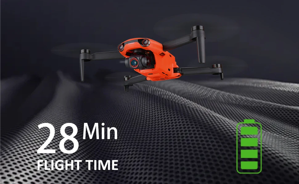 28 Minutes Max Flight Time: More Battery, More Time, More Creativity. The EVO Nano+ drone can fly continuously for 28 minutes, which means plenty of time to experiment with creative angles and dream up inventive shots. NOTE: This autel evo nano plus premium bundle includes total 3 batteries.