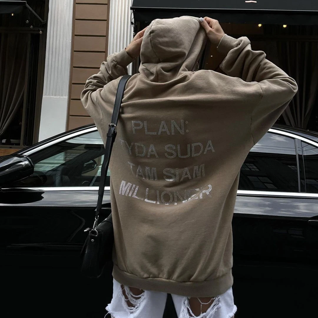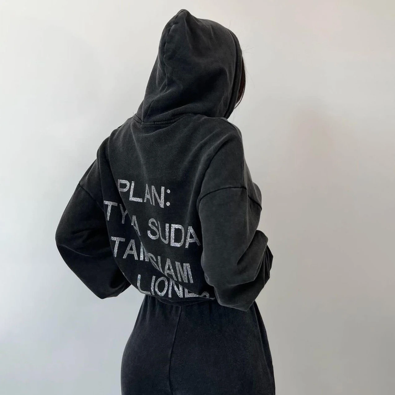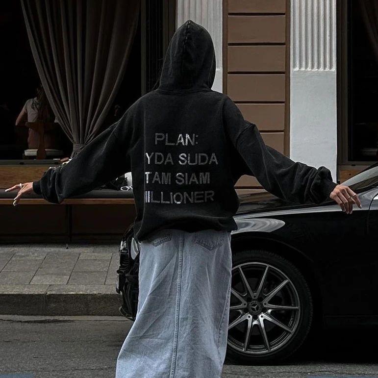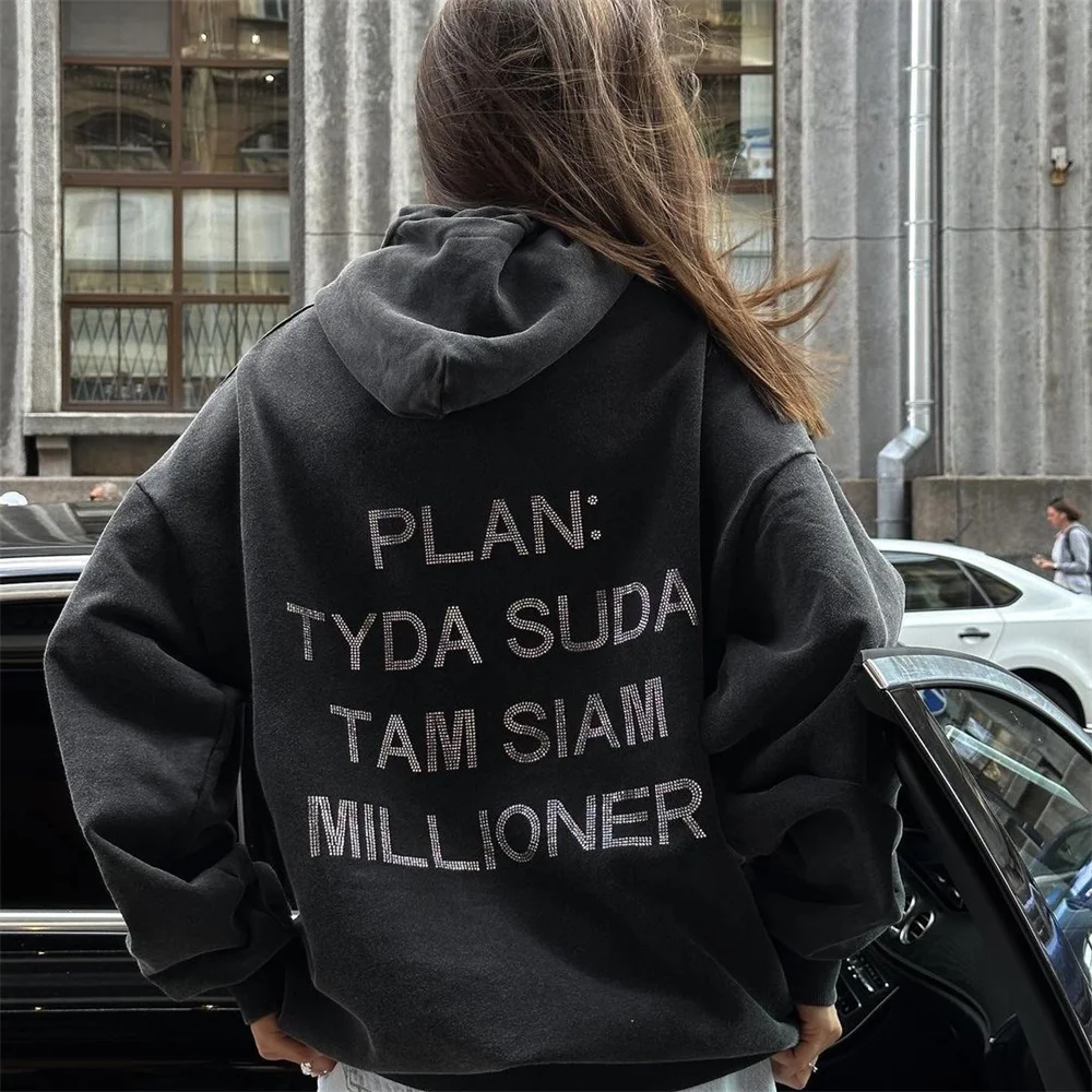 Autumn And Winter Women Clothing Harajuku Letter Retro Diamonds Y2k Distressed Hoodies Loose Causal Hooded Women’s Sweatshirt