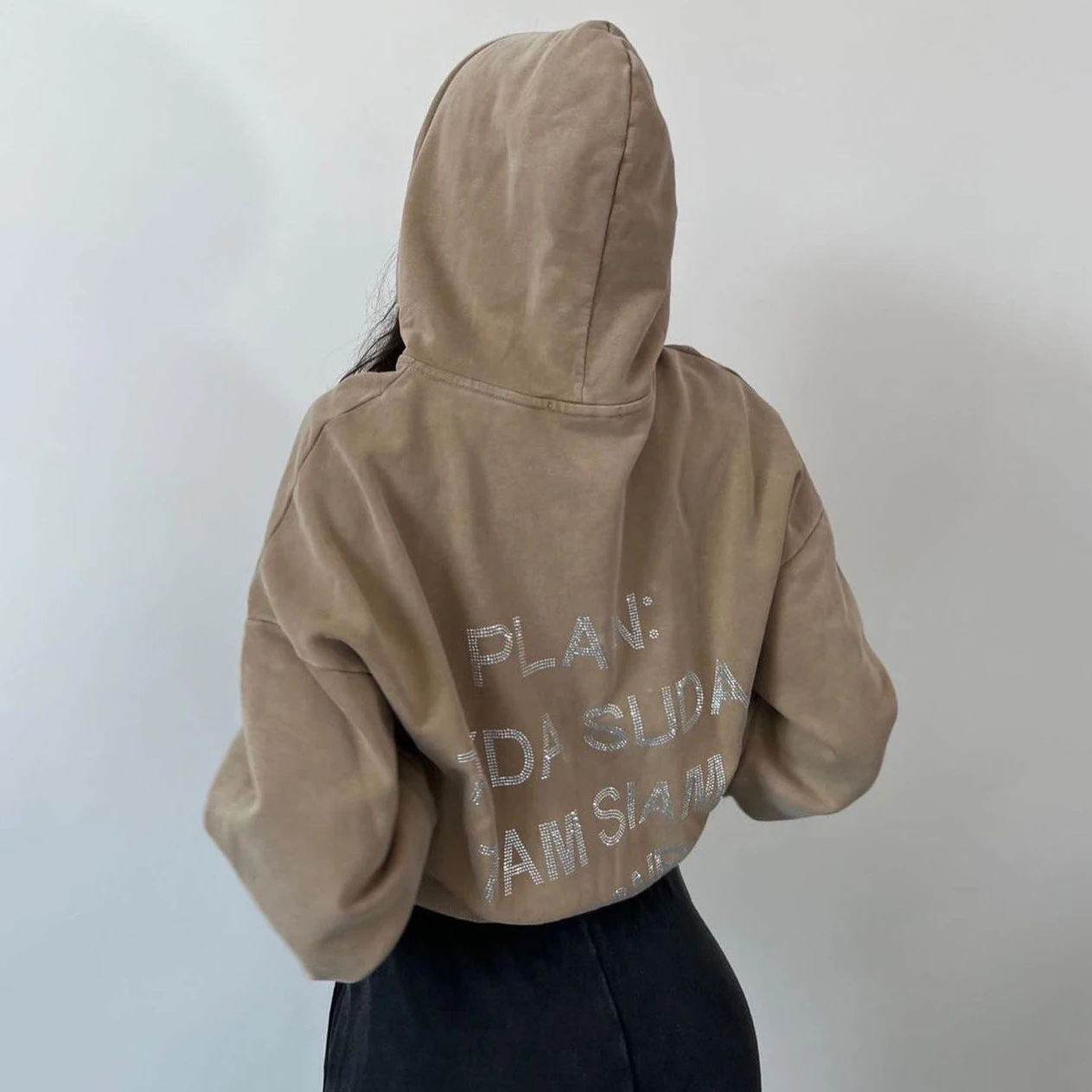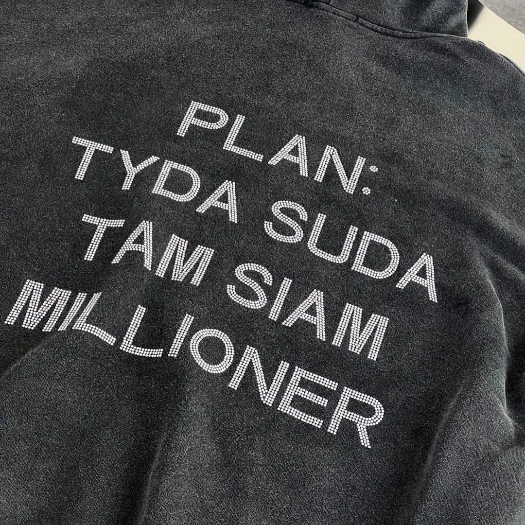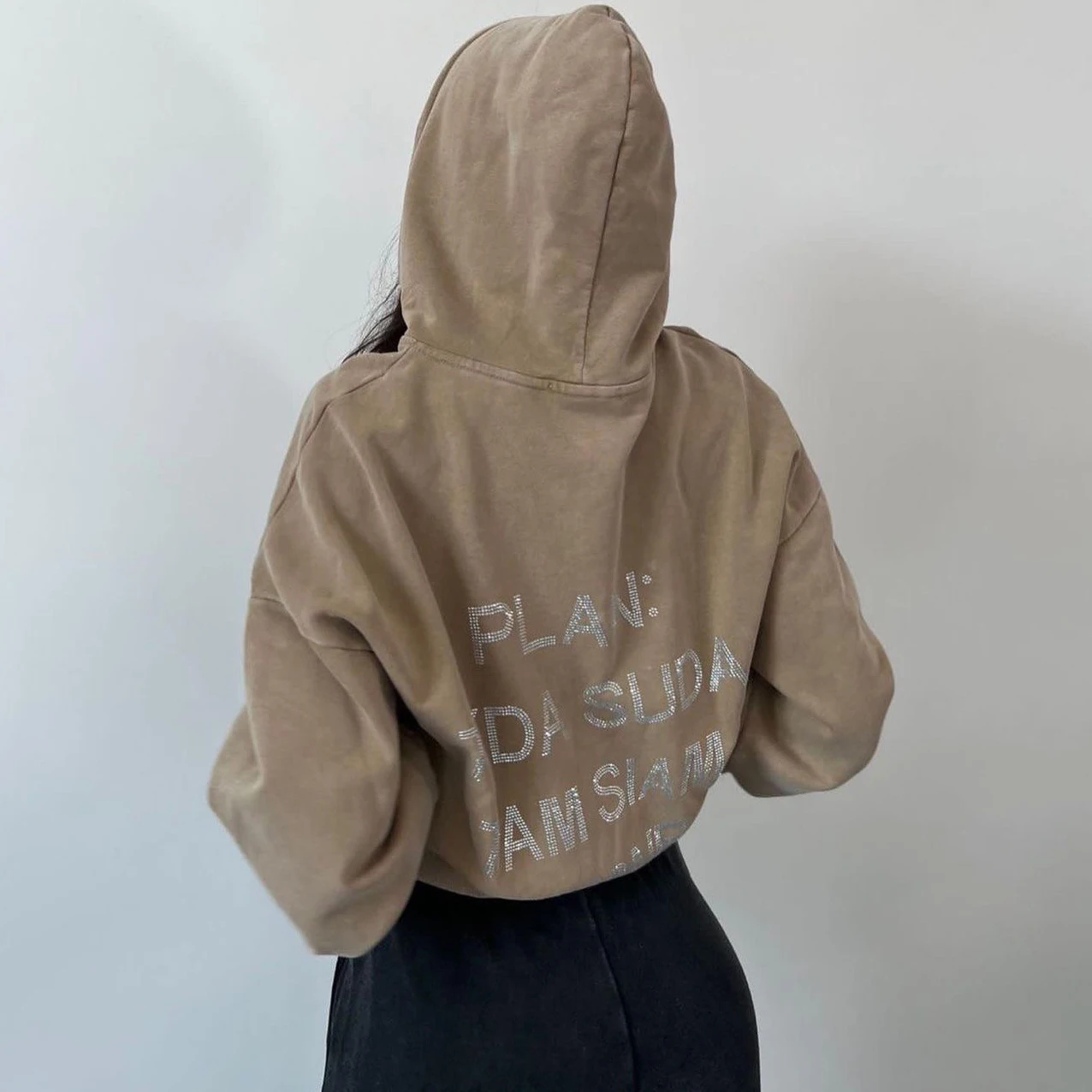 Autumn And Winter Women Clothing Harajuku Letter Retro Diamonds Y2k Distressed Hoodies Loose Causal Hooded Women’s Sweatshirt