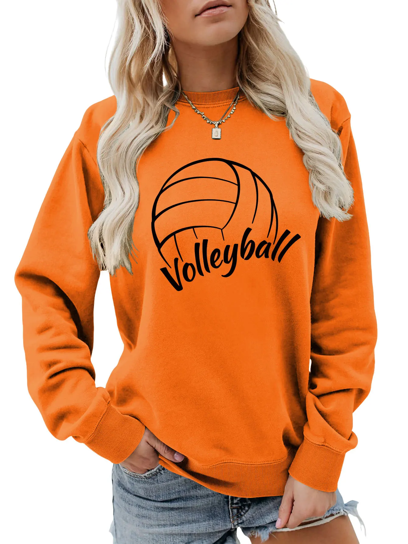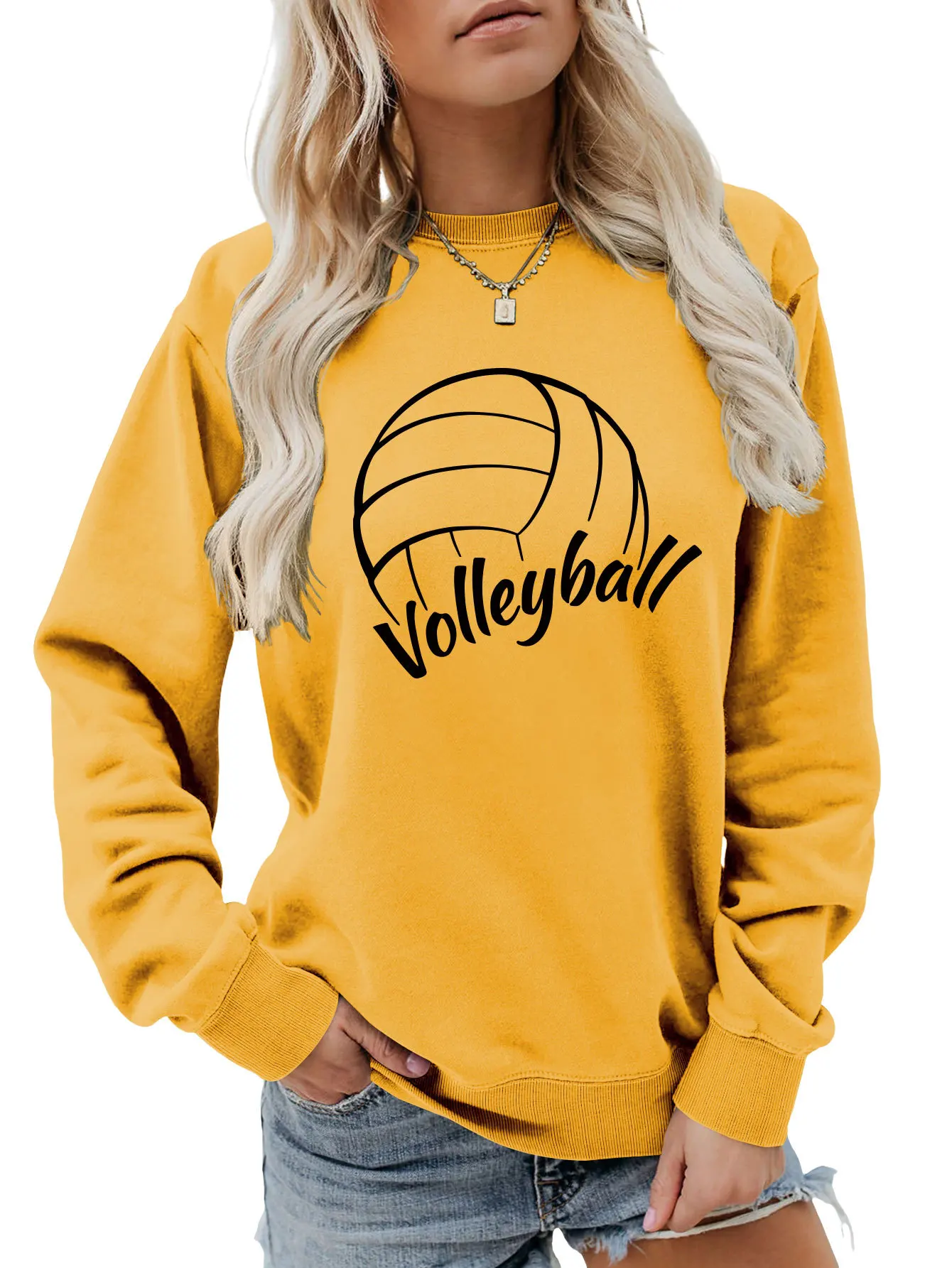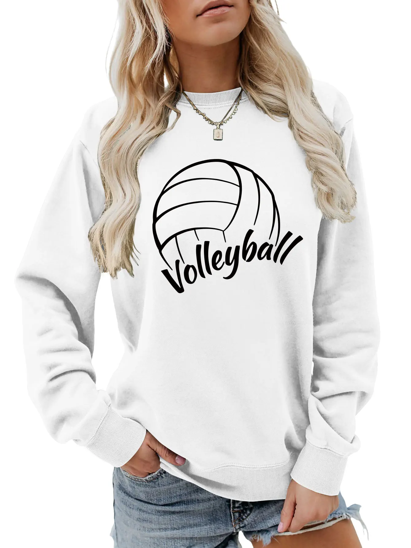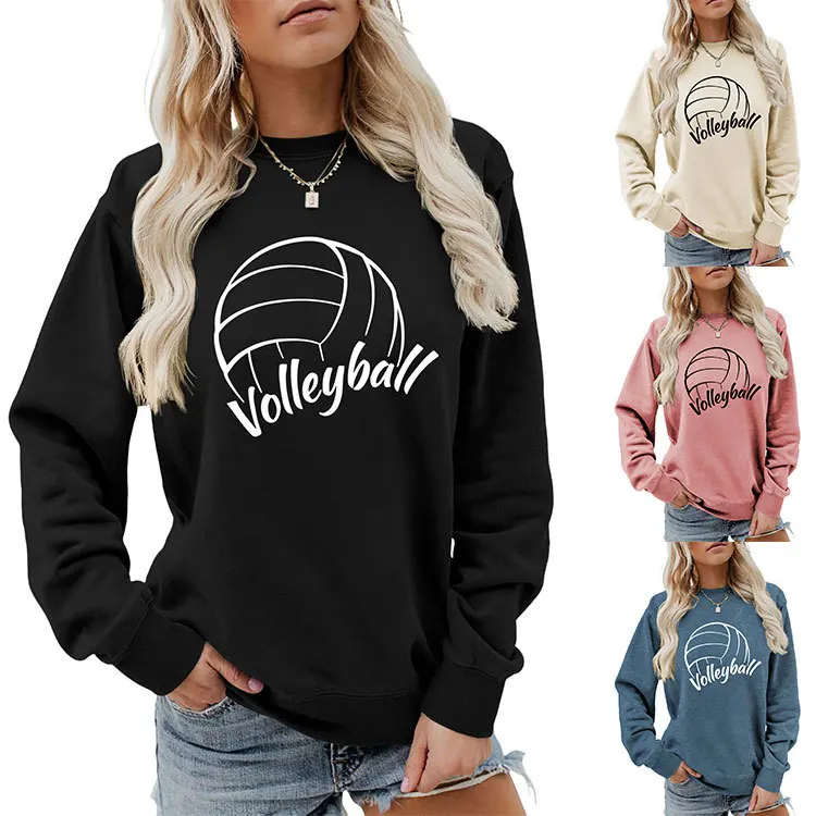 Autumn round neck casual T-shirt hoodie volleyball ball printing new loose long-sleeved ladies blouse with all fashion pullover