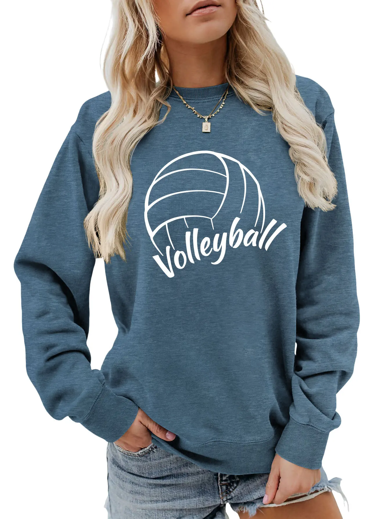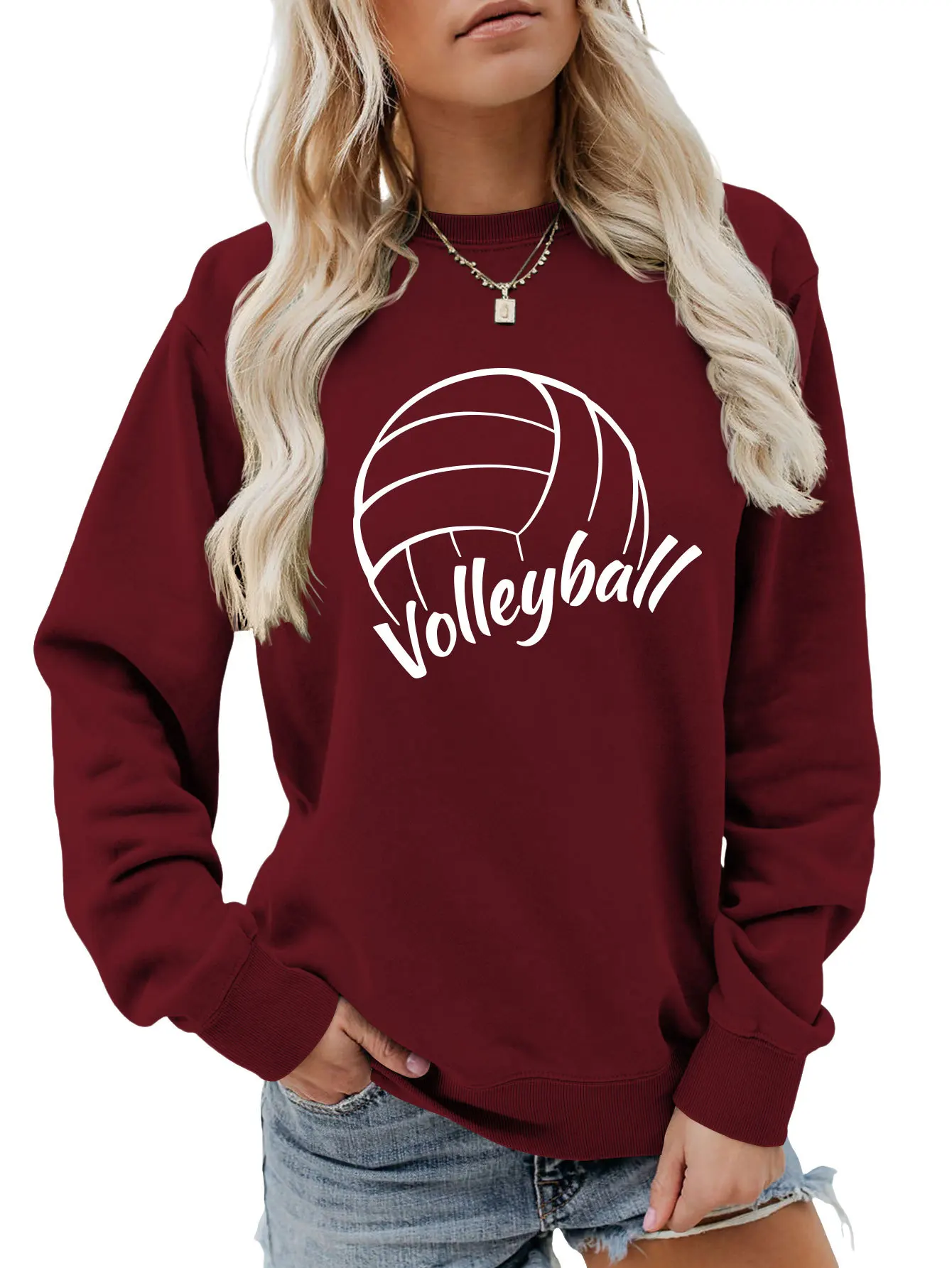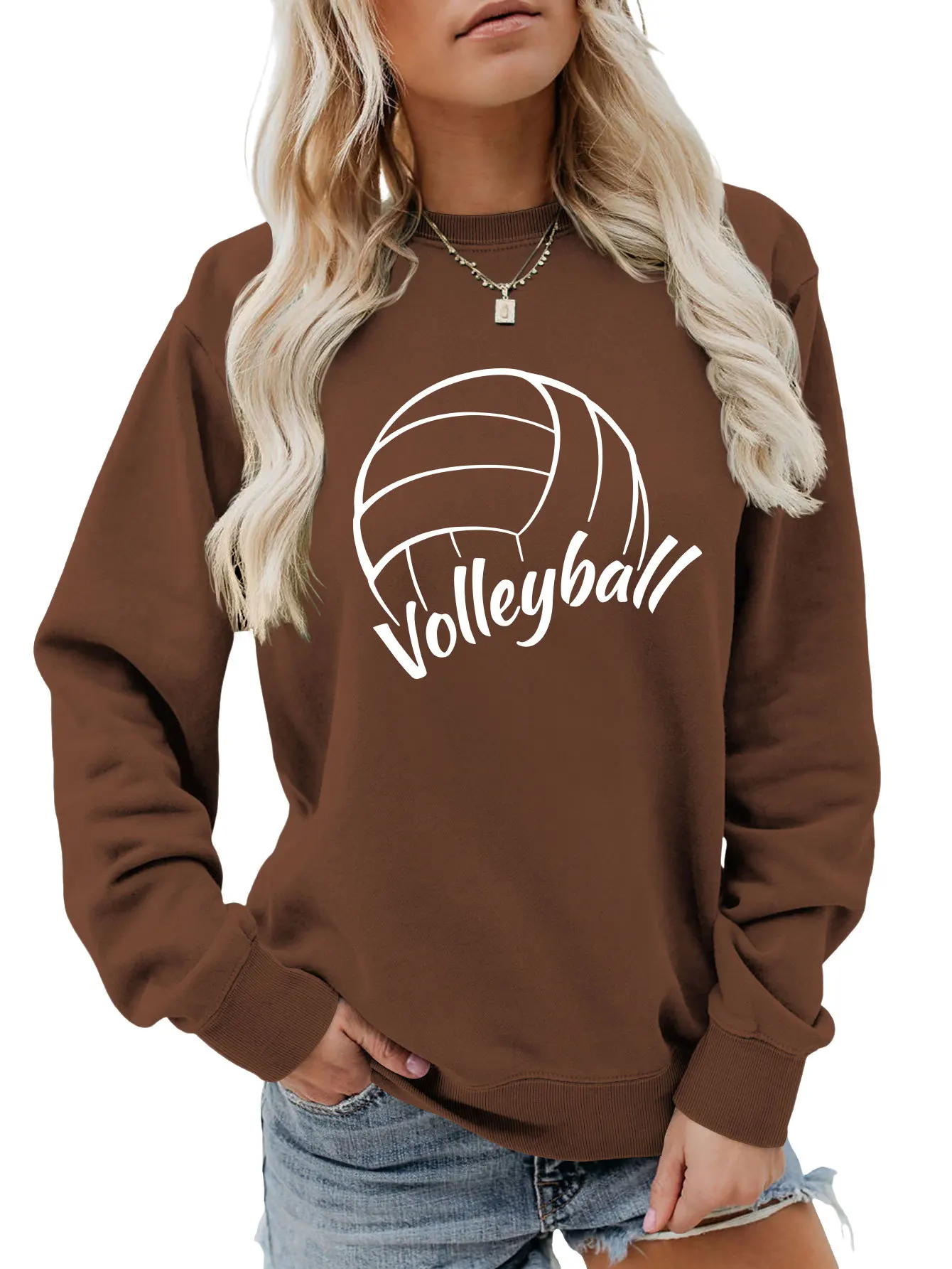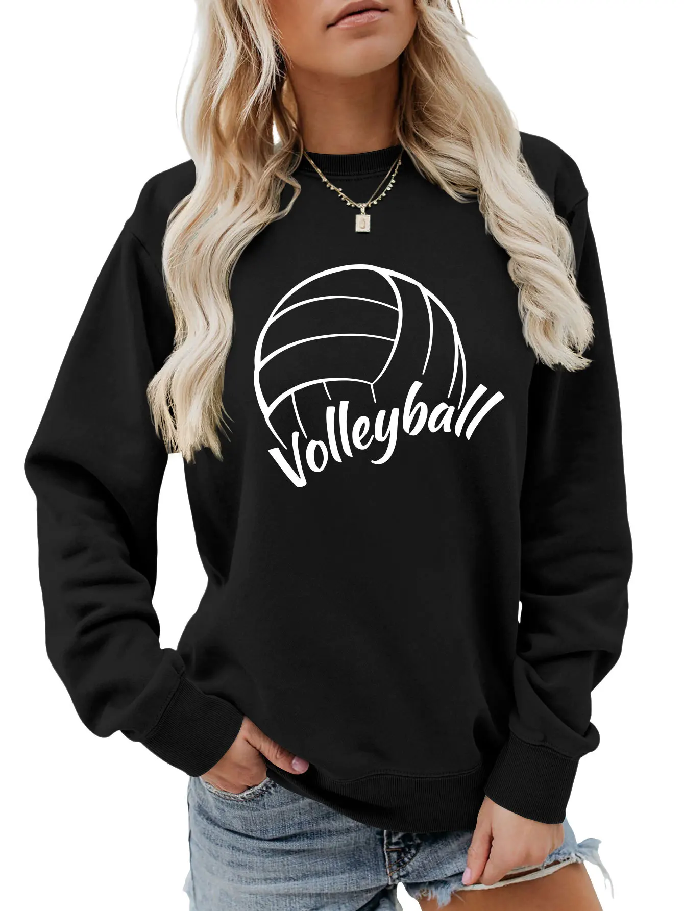 Autumn round neck casual T-shirt hoodie volleyball ball printing new loose long-sleeved ladies blouse with all fashion pullover