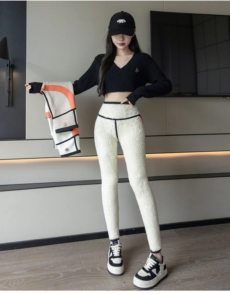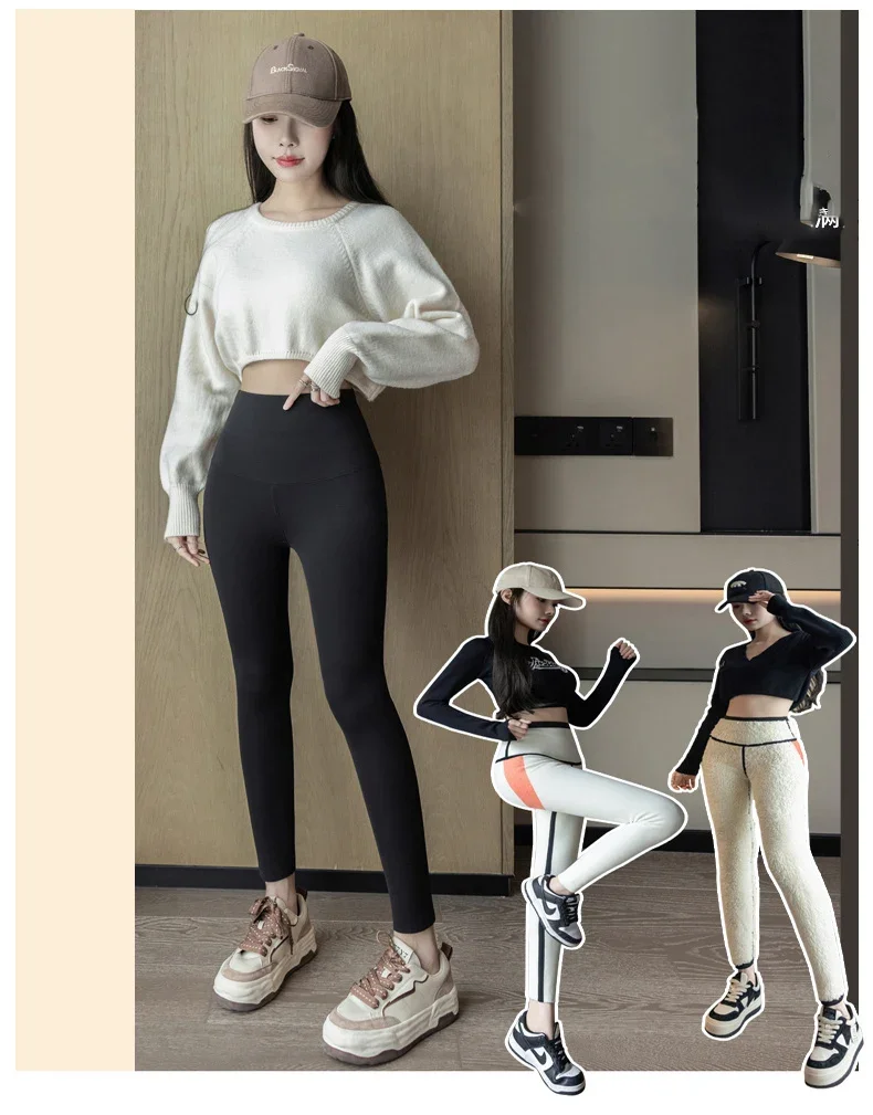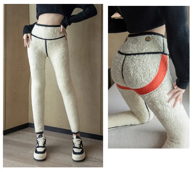 Autumn Winter Extra Thick Lamb Velvet Shark Leggings Women’s High Waist Butt Lifter Black Thermal Fleece Warm Leggings
