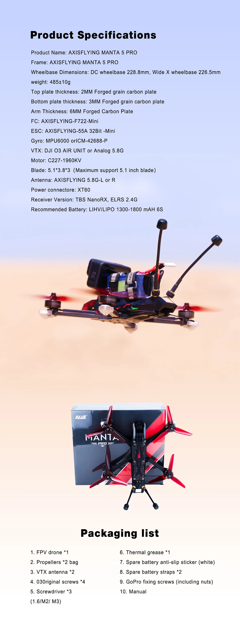 AXISFLYING Manta 5 PRO FPV Drone PNP/ELRS 2.4G/TBS Receiver DC Frame For RC FPV Cinematic Freestyle Drone Quadcopter Cinewhoop
