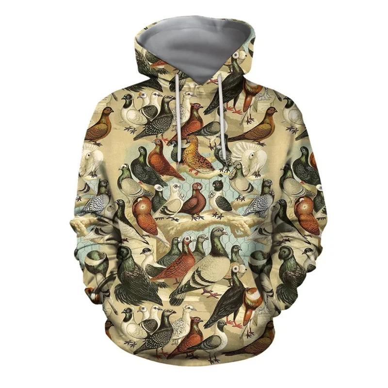 Bird Pigeon Hunting Pattern Hoodie For Men Duck Animal 3D Print Long Sleeve Autumn Casual Pullover Tops Hoodies Loose Sweatshirt