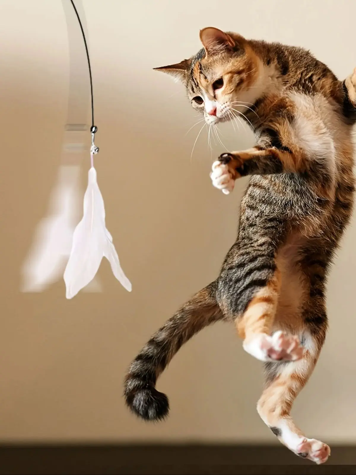 Bite-Resistant Cat Teaser Stick with Bell, Feather, and Long Rod – Fun and Interactive Cat Toy with Suction Cup Base