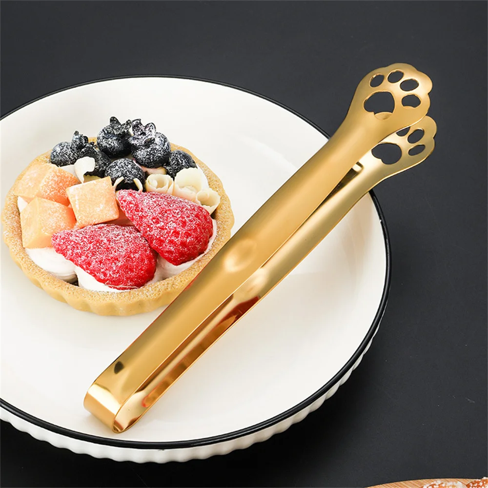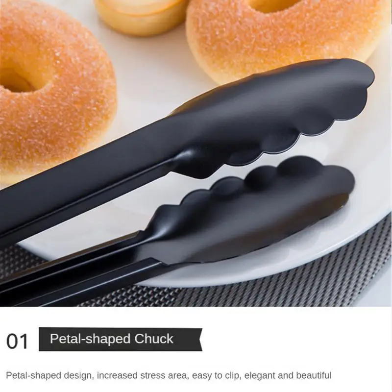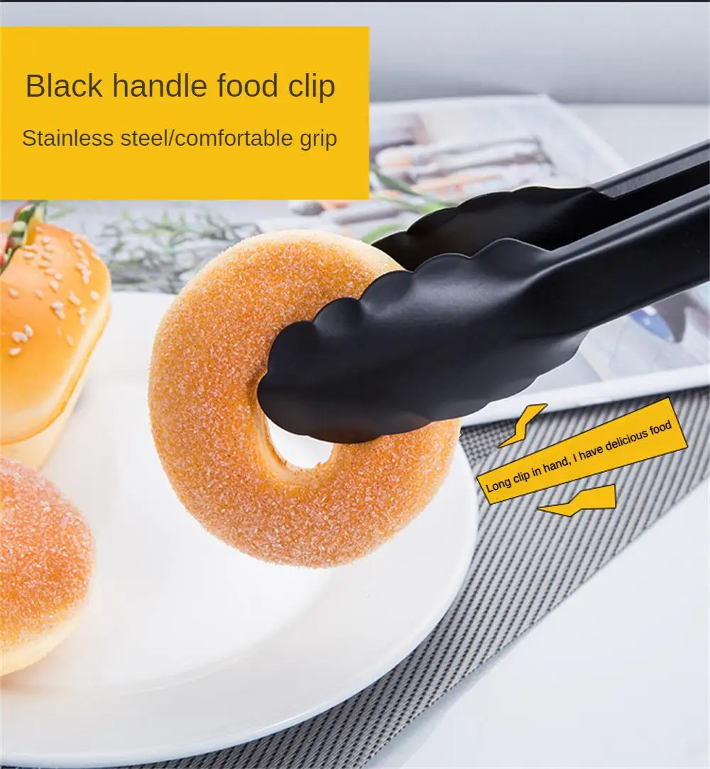 Black Long Handle Food BBQ Tongs Cake Clip Buffet Serving Clamp Stainless Steel Tableware Cooking Utensils Kitchen Accessories