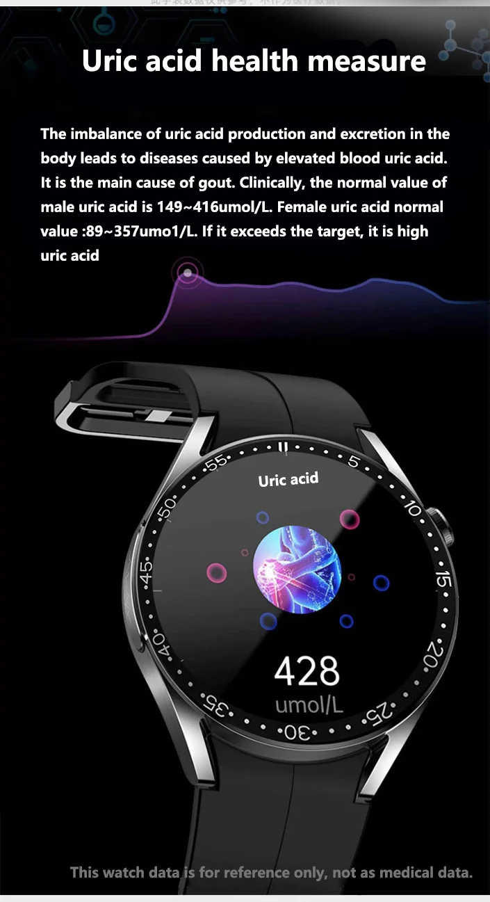 Blood Glucose Watch Heart Rate Blood Pressure Blood Oxygen Temperature Monitoring Health Sports Waterproof Non-Invasive Glucose