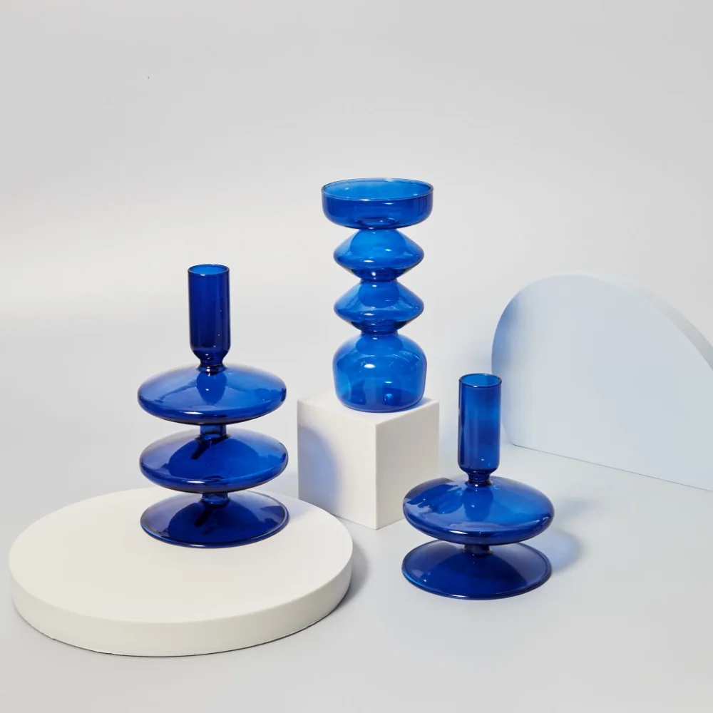 Blue Glass Candlesticks for Wedding Birthday Holiday Home Decoration Morden Decorative Glass Candle Holder 1PC NJ71005