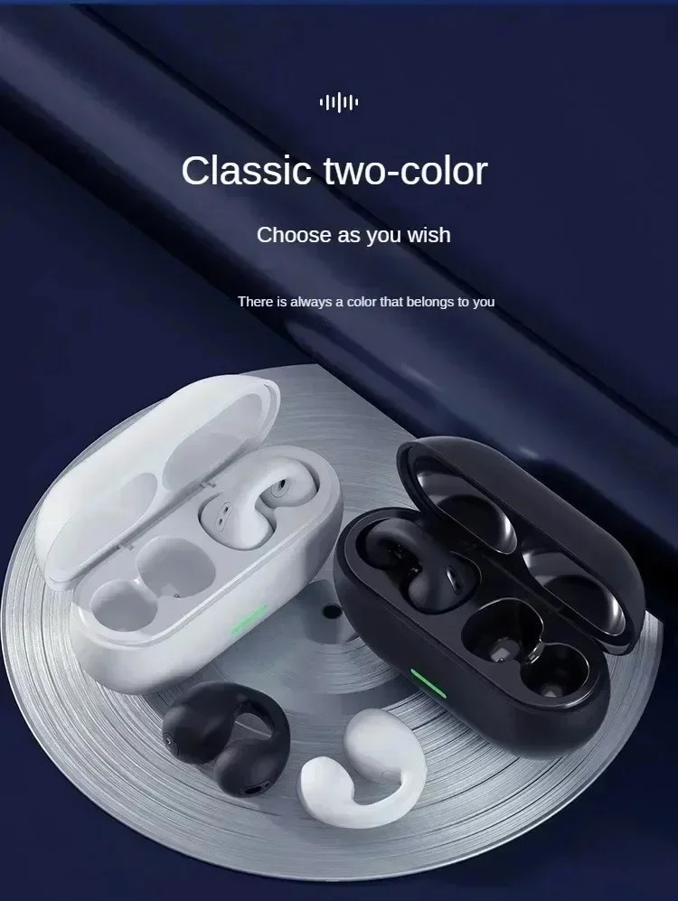 Bluetooth Headset 5.3 Wireless Bone Conduction Headphones Clip Ear Music Noise Canceling HD Call Sports Gaming Earphone