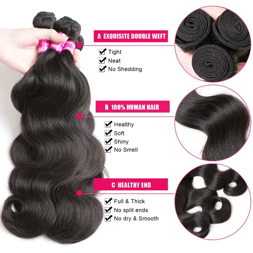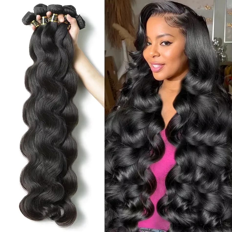 Body Wave Human Hair Bundles Brazilian Hair Weave Bundles 1/3/4 Bundle Deals Human Hair Extensions Natural & Jet Black