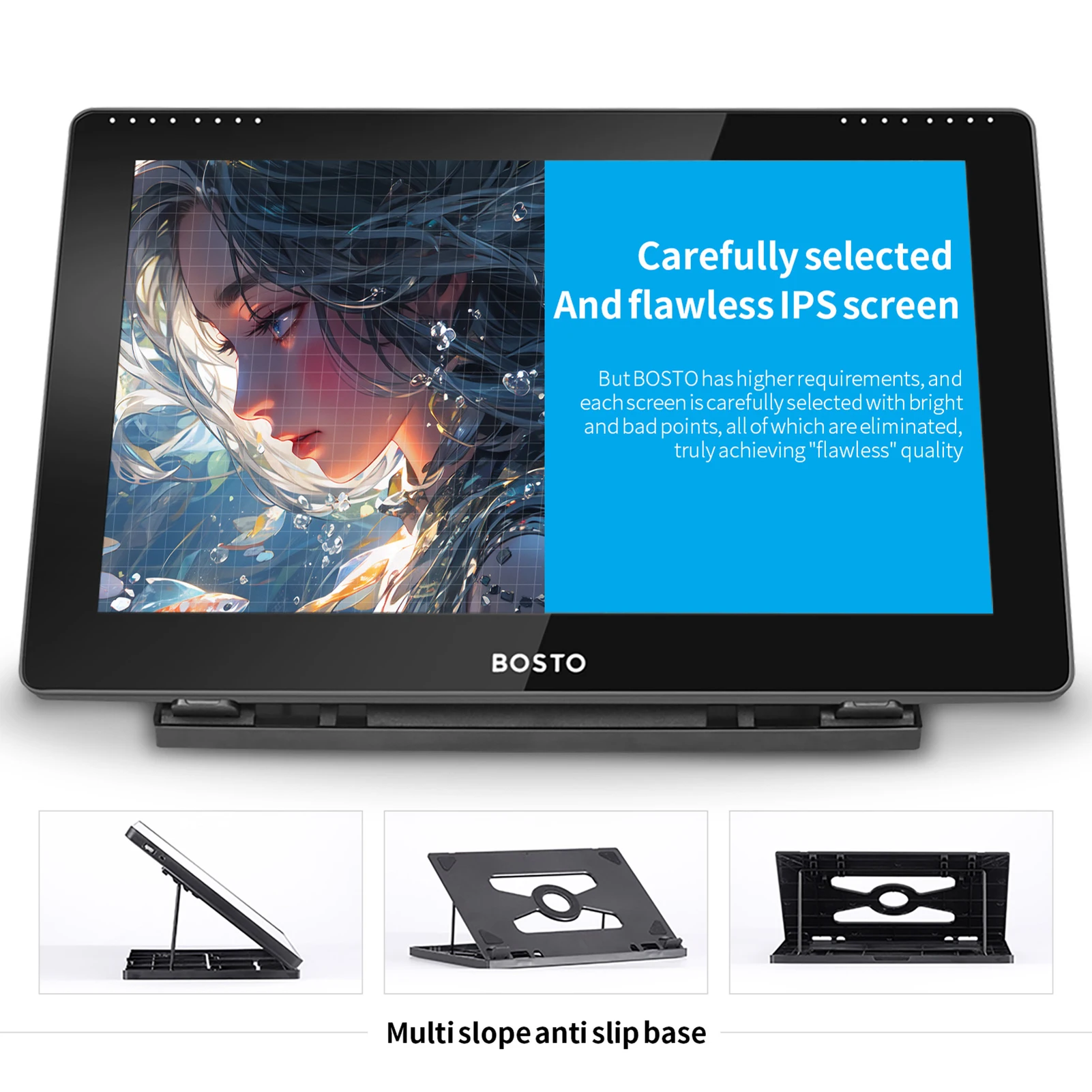 BOSTO 16HD 15.6 Inch IPS Graphics Drawing Tablet Display Monitor 1920×1080 High Resolution 16K Pressure Level with Rechargeable
