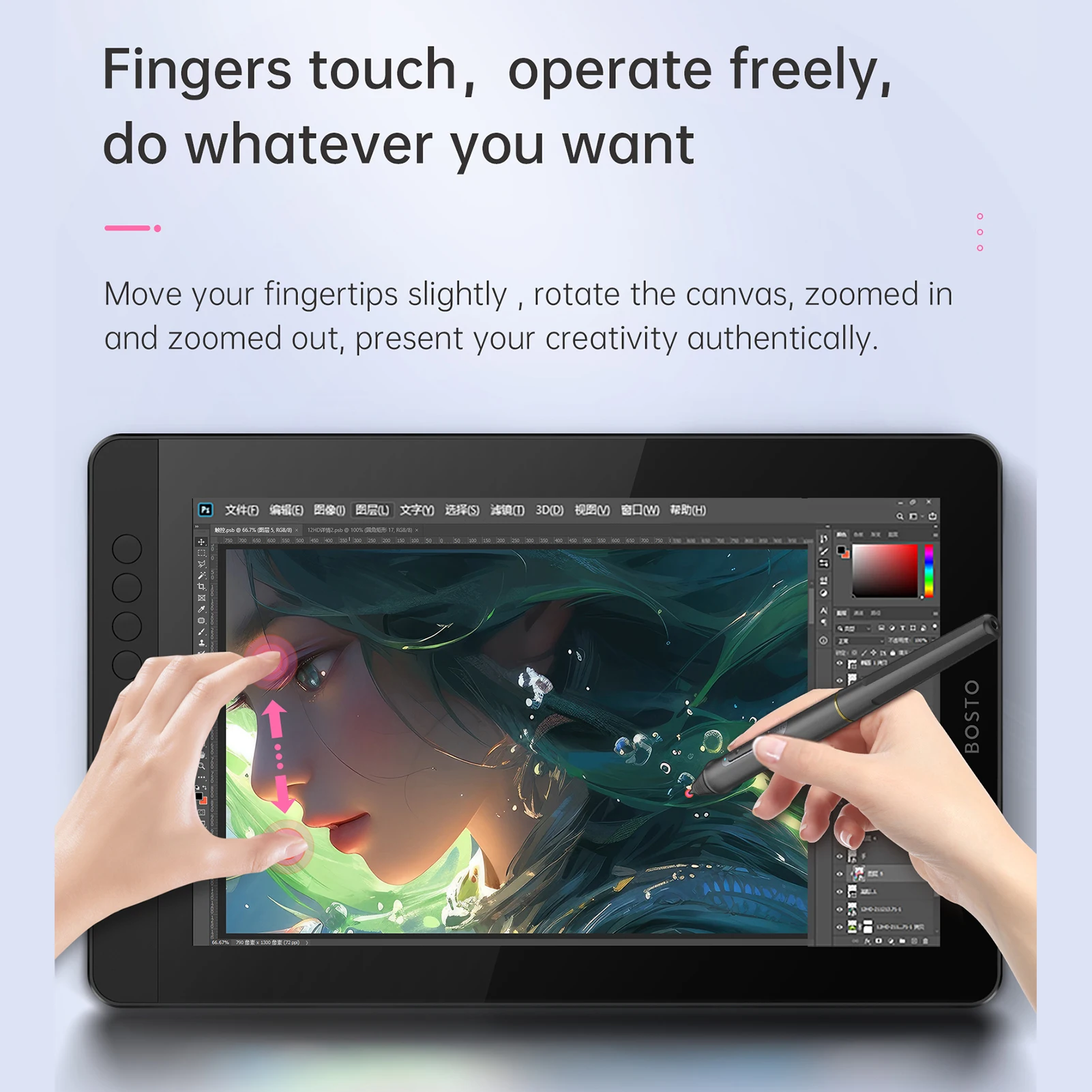 BOSTO BT-13HDK Graphics Drawing Tablet 13.3 Inch H-IPS LED Screen Display Anti-glare Digital Art Drawing Pad 16K Pressure Level