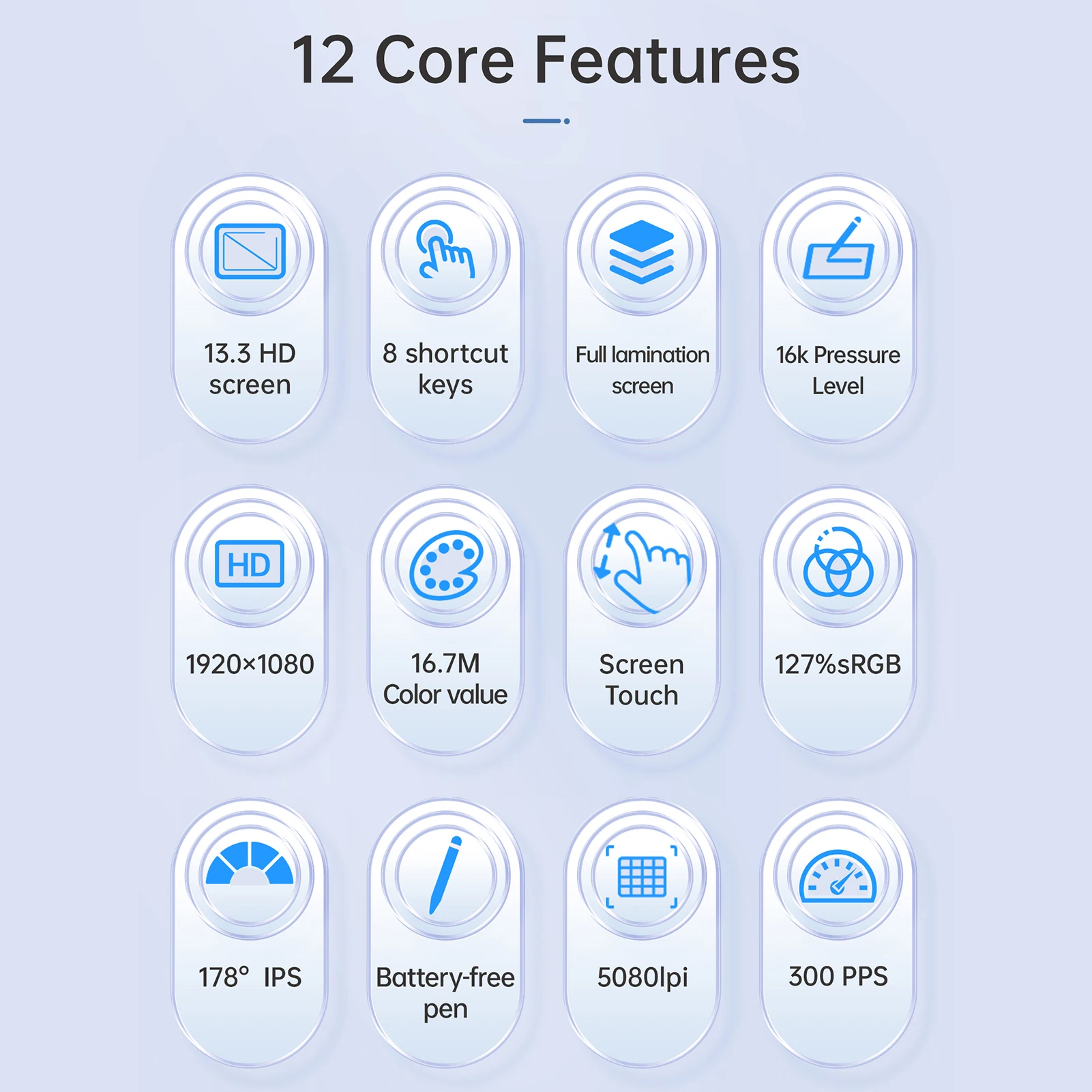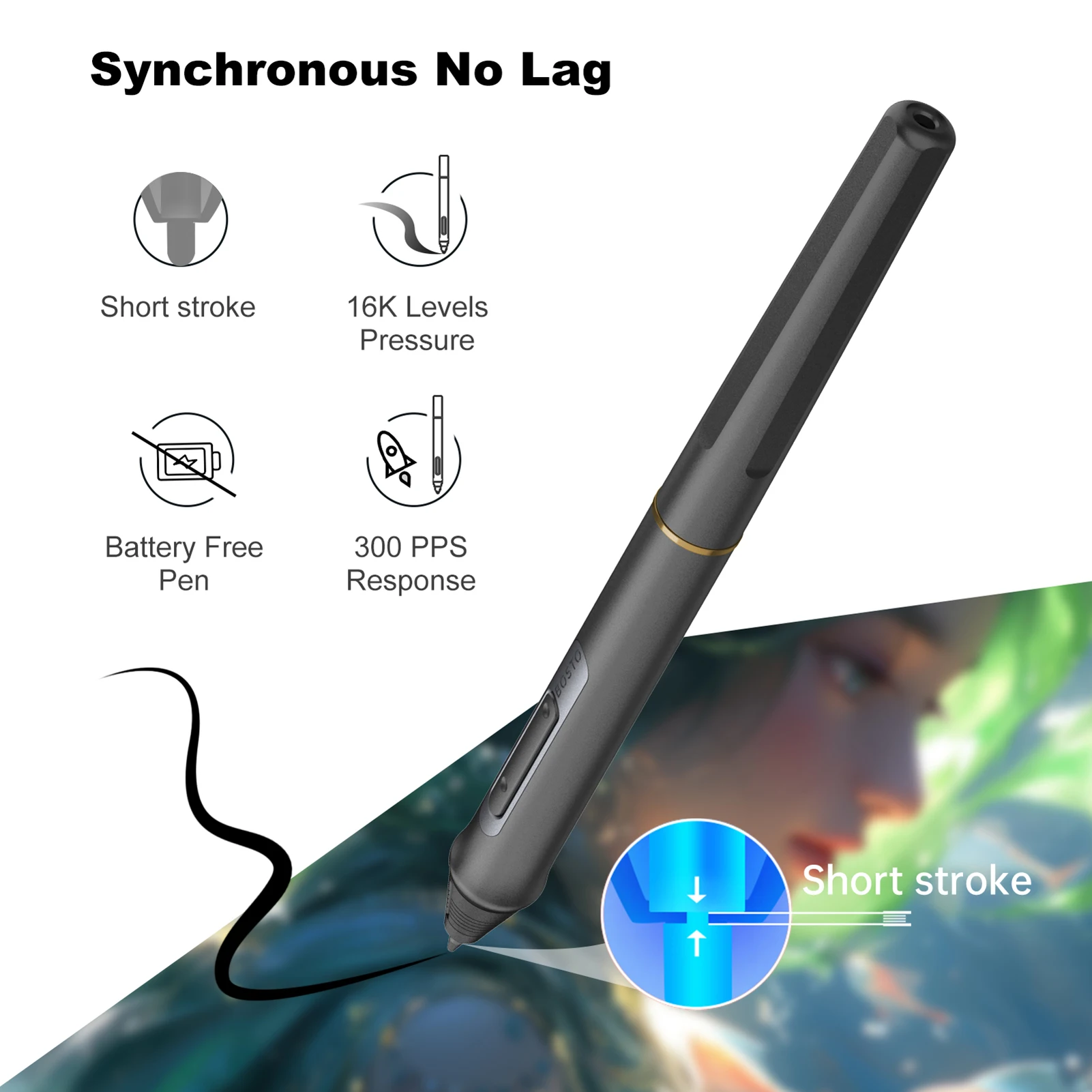 【16K Pressure Level Induction】 The pen features 16K pressure level, delivers a lifelike drawing experience. 25ms fast response rate, 300PPS tablet reading speed, makes drawing lines are more delicate, more detailed, gives you a smooth and natural feeling when you're drawing.