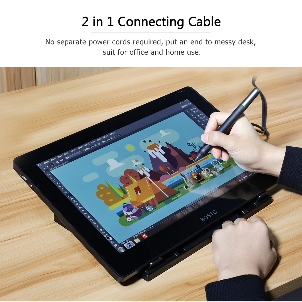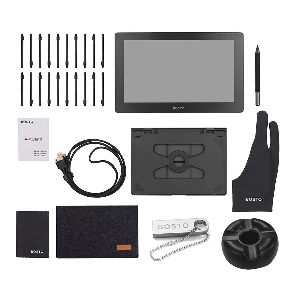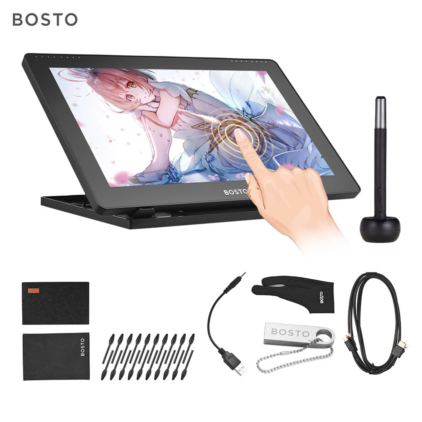 BOSTO BT-16HDK Portable 15.6 Inch H-IPS LCD Graphics Drawing Tablet Display 8192 Pressure Level Passive Technology USB-Powered