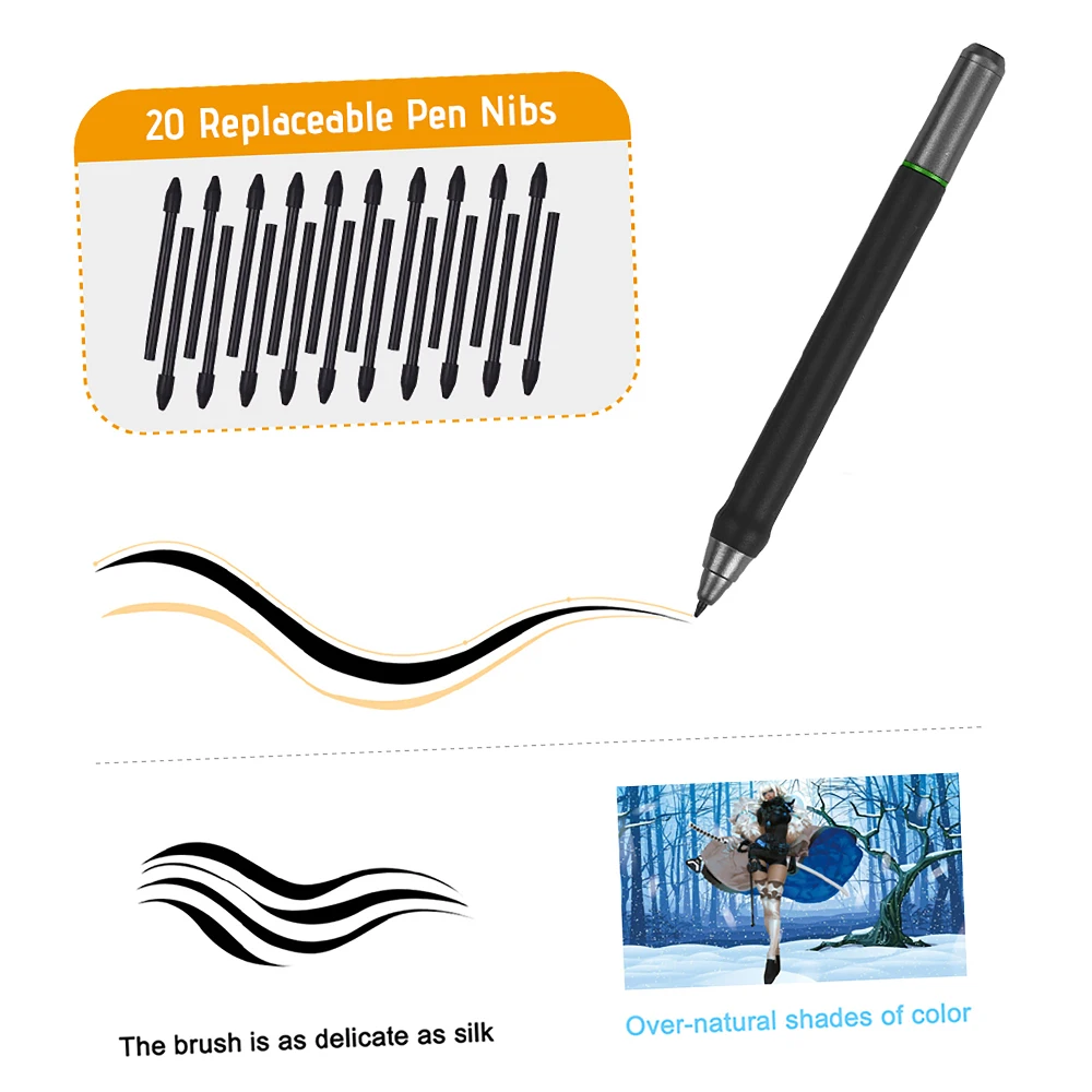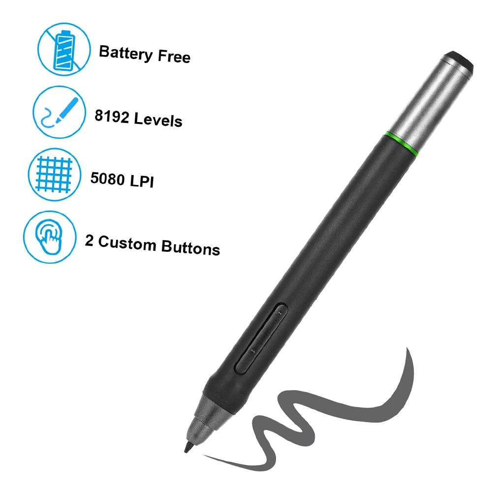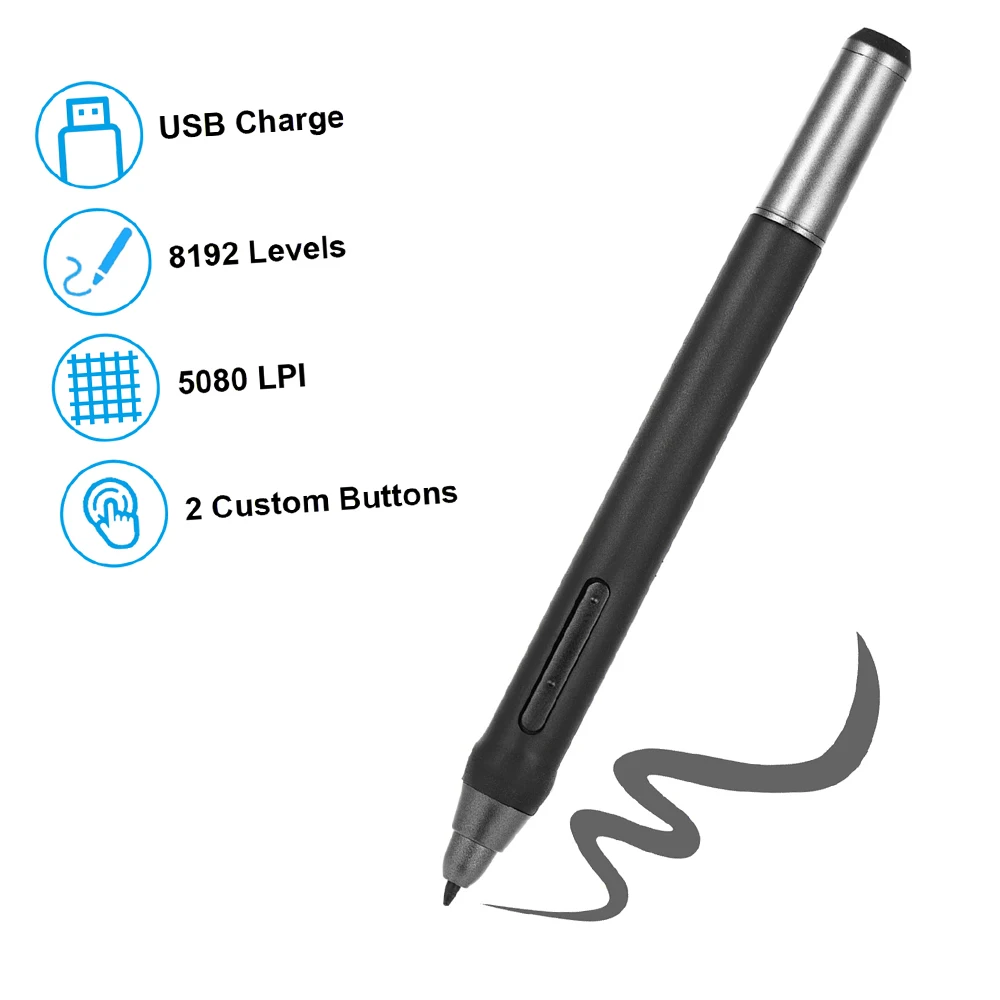 8192 level pressure induction drawing pen, 8ms fast report rate, max. 15mm sensing height.