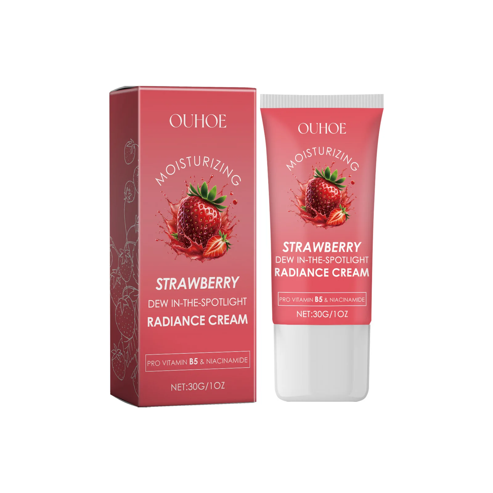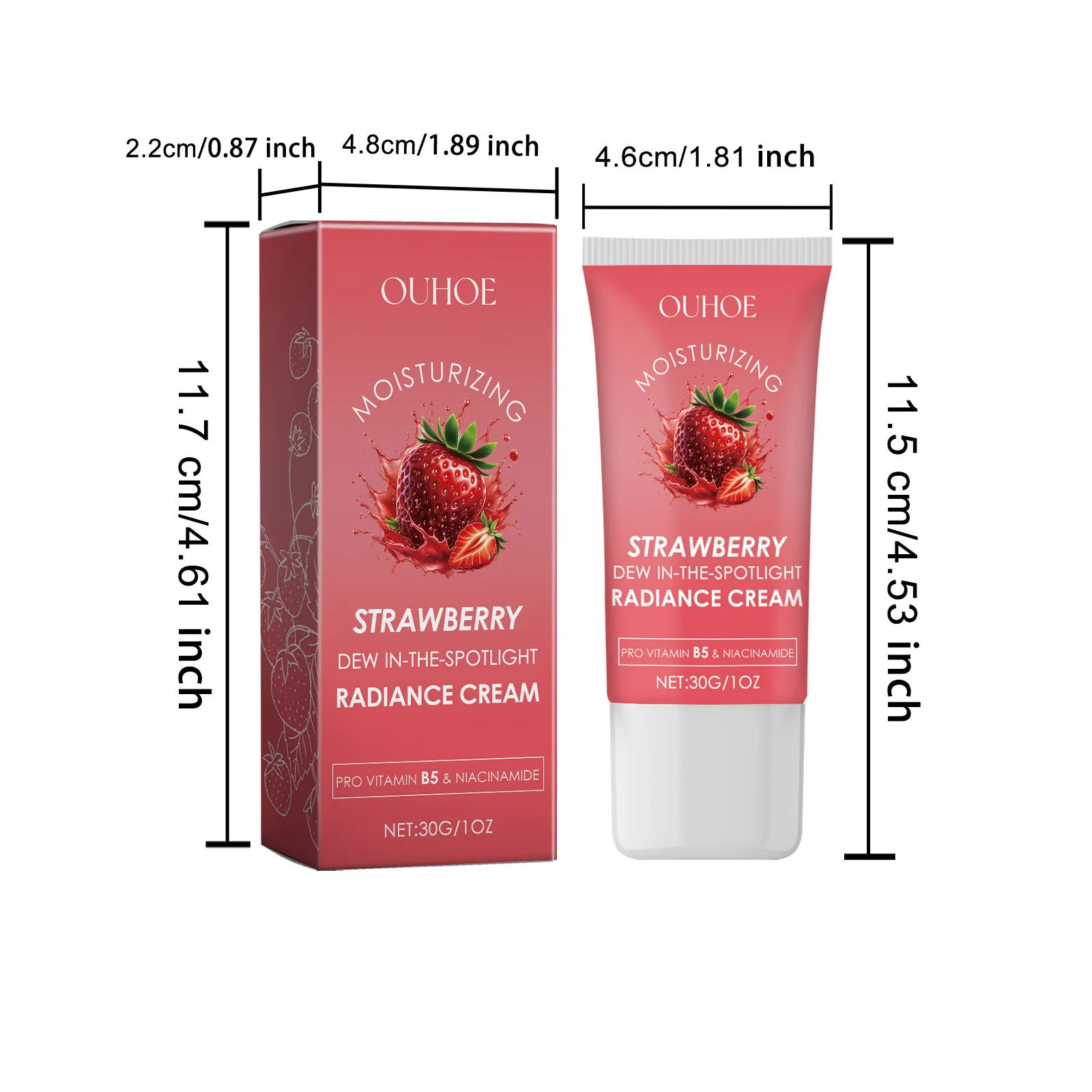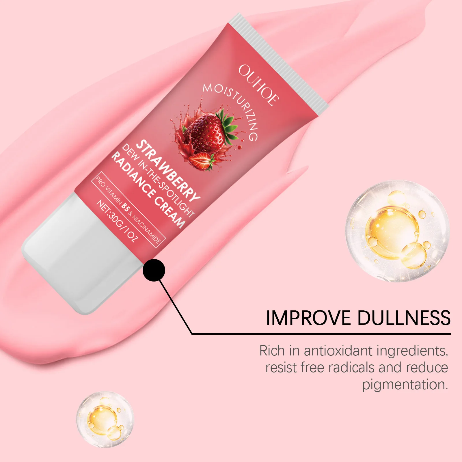 3. Strawberry brightening face cream effectively targeting dull skin, brightening skin tone, removing dark spots, reducing pigmentation, repairing dullness, improving skin texture, achieving even skin tone, and maintaining skin brightness