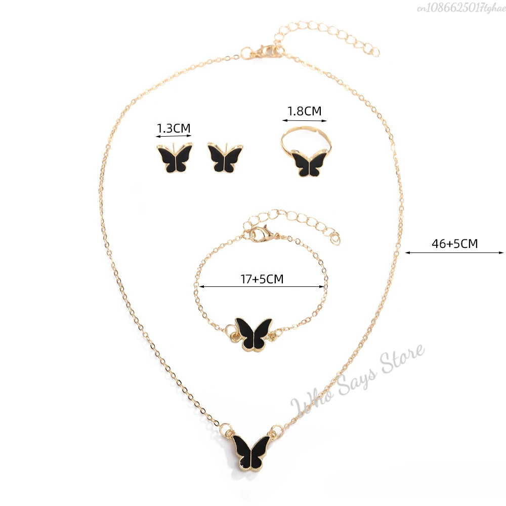 Butterfly Jewelry Sets Crystal Acrylic Romantic Bracelet Ring Necklace Earring Set for Women Wedding Dinner Dress Accessories