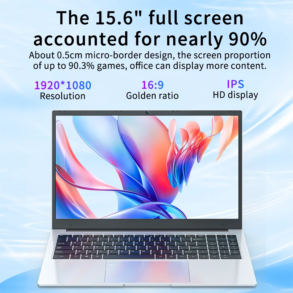 BYONE 15.6 Inch Slim Laptop Intel Celeron N5095 8G 12G RAM 256G 512GB SSD Keyboard Backlight Fingerprint Unlock Portable Laptops