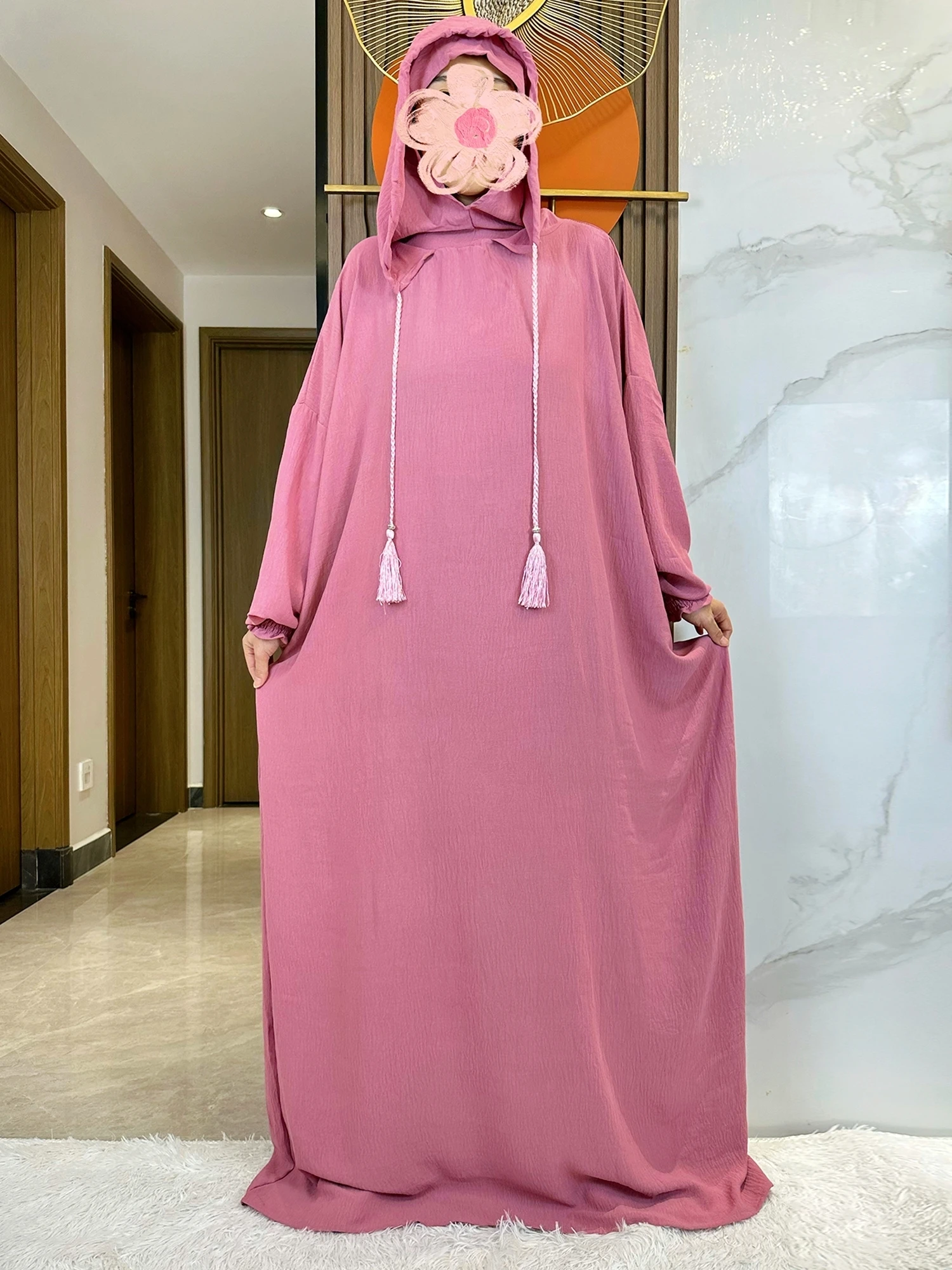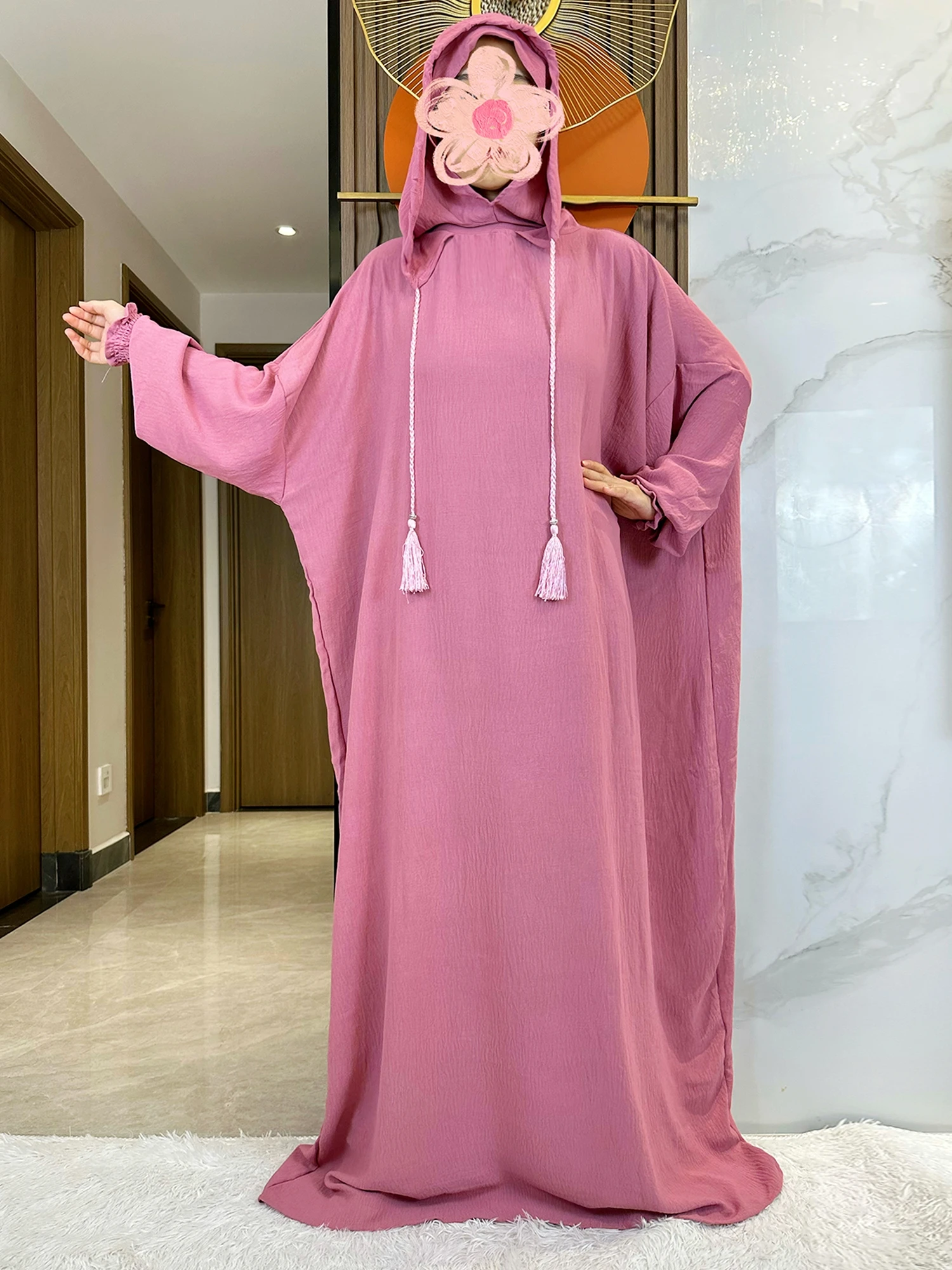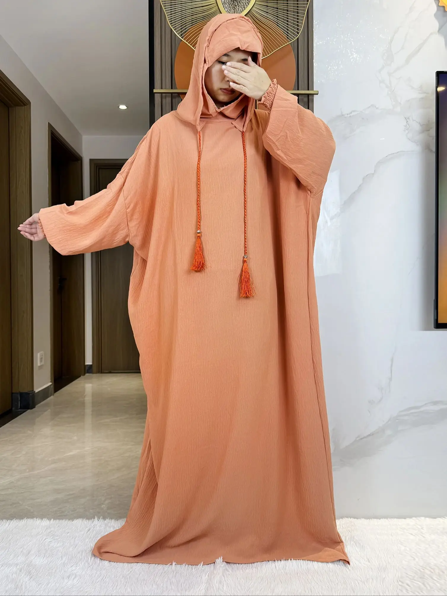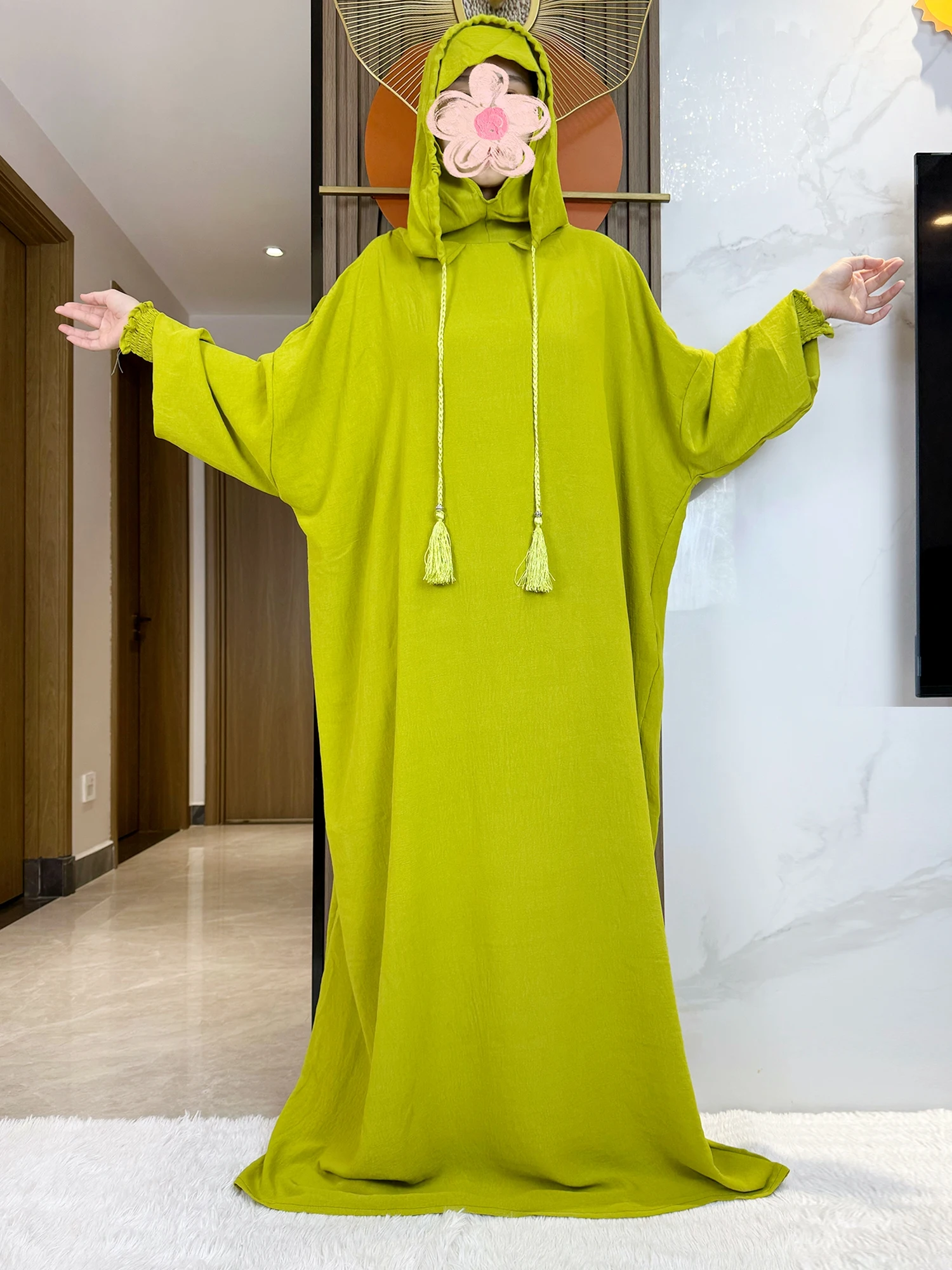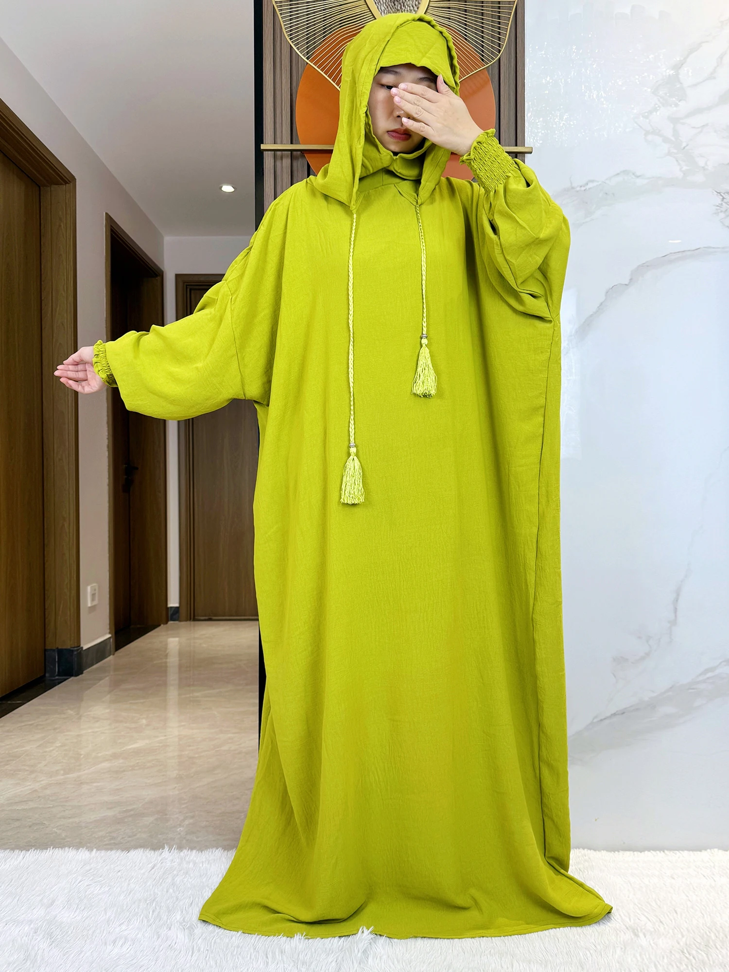 Candy Color Women Cotton Abayas Muslim Ramadan Prayer Clothes With Hooded Jalaba Casual Batwing Sleeve Arab Robe Eid Djellab