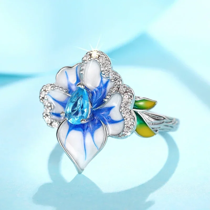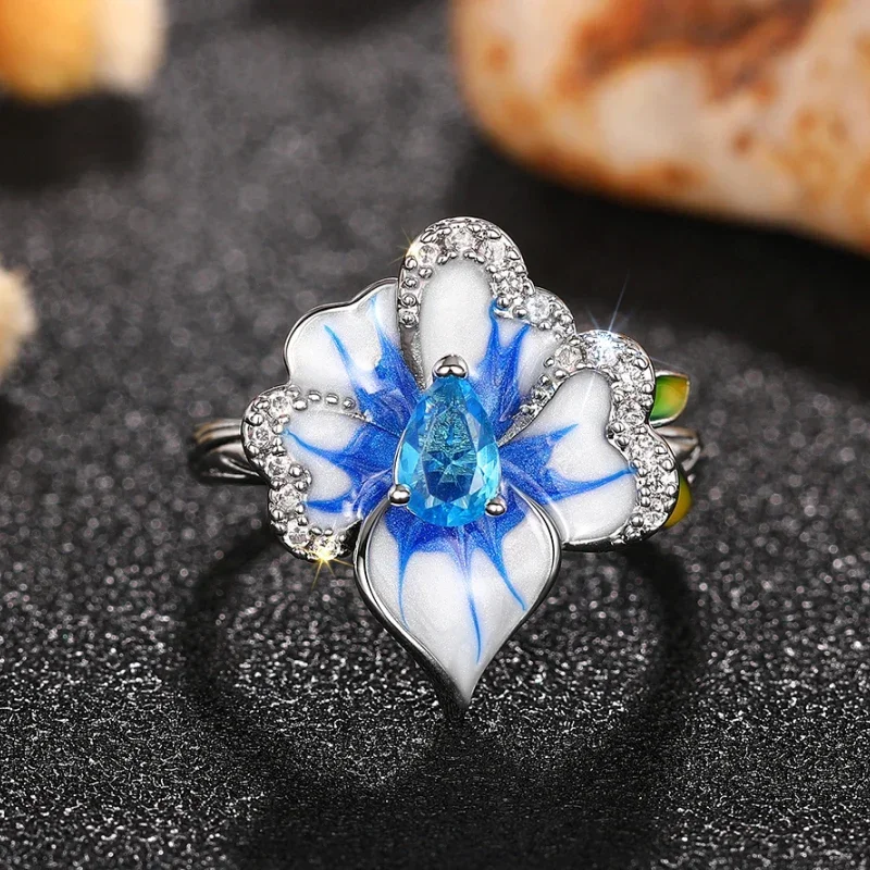 CAOSHI Newly Blue Flower Designed Rings for Women Intersperse Bling Bling Cubic Zirconia Accessories Dance Party Trendy Jewelry