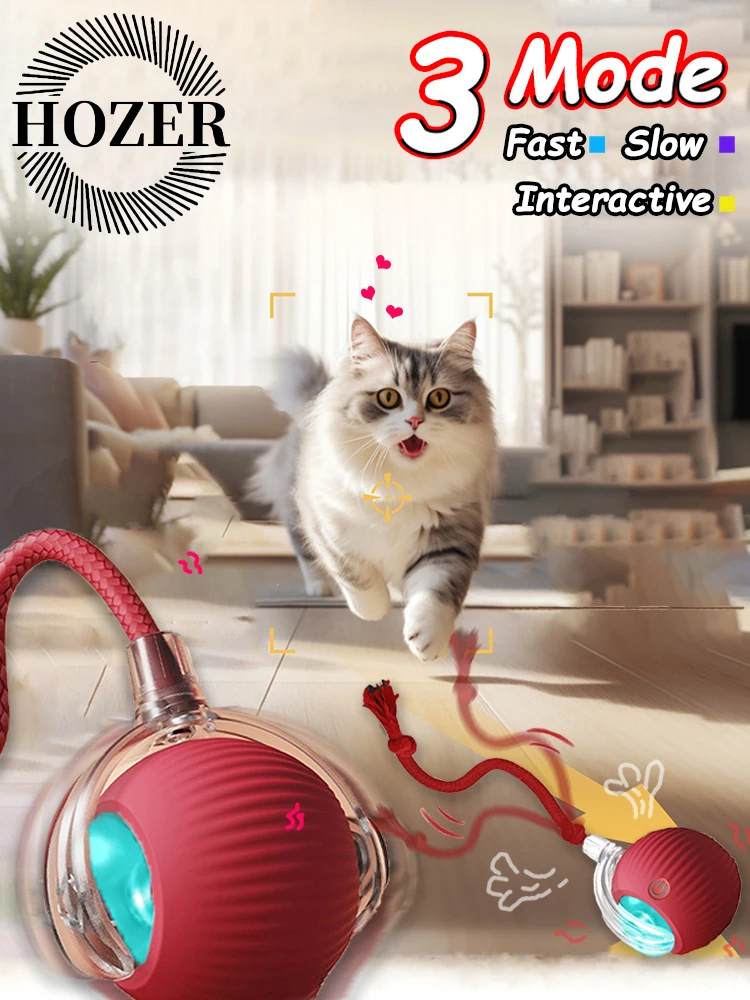 Cat Interactive Ball Toys 3 Mode Automatic Rolling Ball Faux Tail Rechargeable Smart Pet Electric Toy Cat Training Imitate Mouse