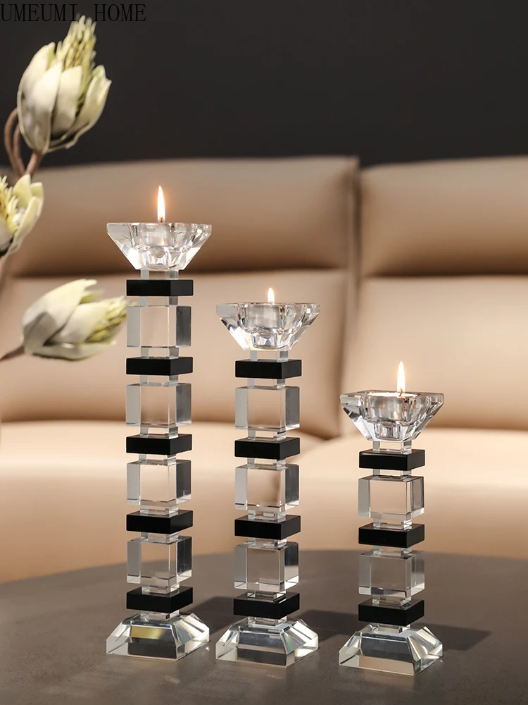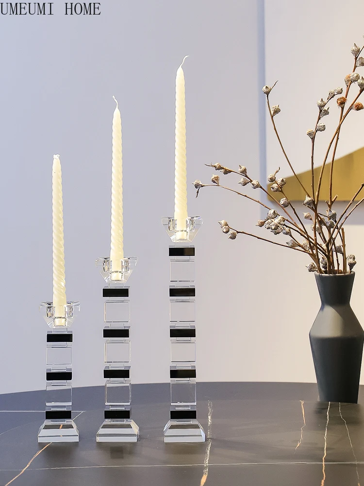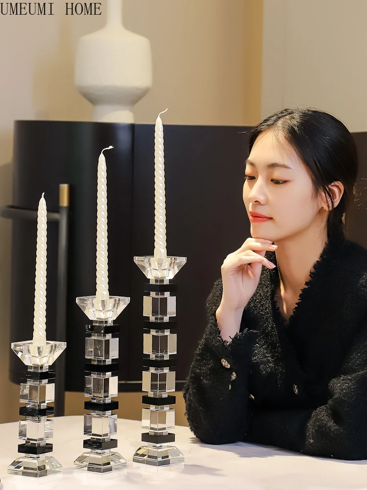 Chic Nordic Crystal Glass Candle Holder Romantic Candlelight Dinner Table Decoration Luxury Candlestick Home Decor