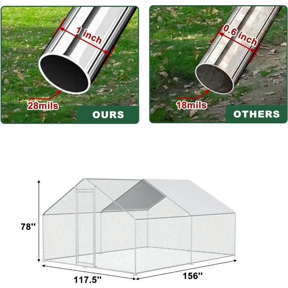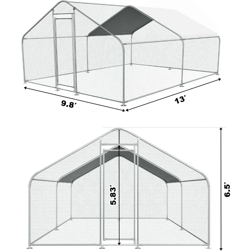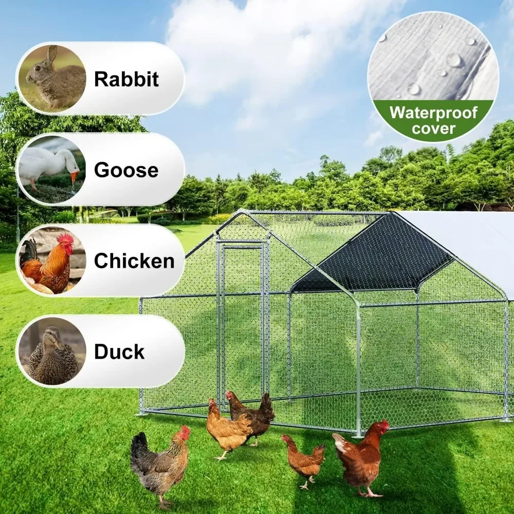 Chicken Coop Large Metal Chicken House for 6/10 Chickens Poultry Cage with Waterproof Cover for Rabbits Duck Walk-in Chicken Run
