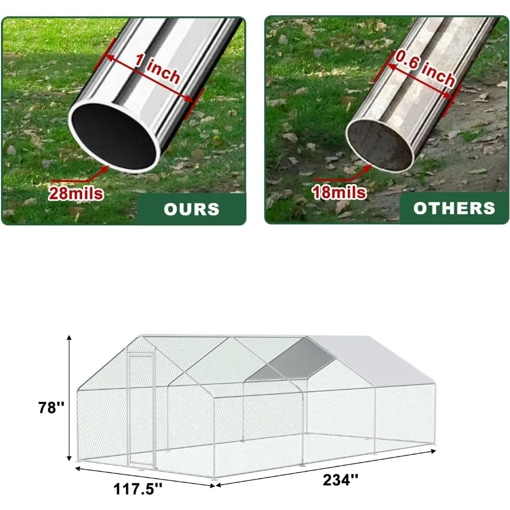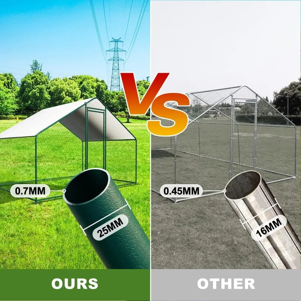 - 🐥【Convenient & Safety Lockable Door】:This chicken run for yard with cover is designed with a firm gate, reinforced door, and lock function for easy access in and out. The narrowed gap to avoid chickens escaping and wild animals entering.
