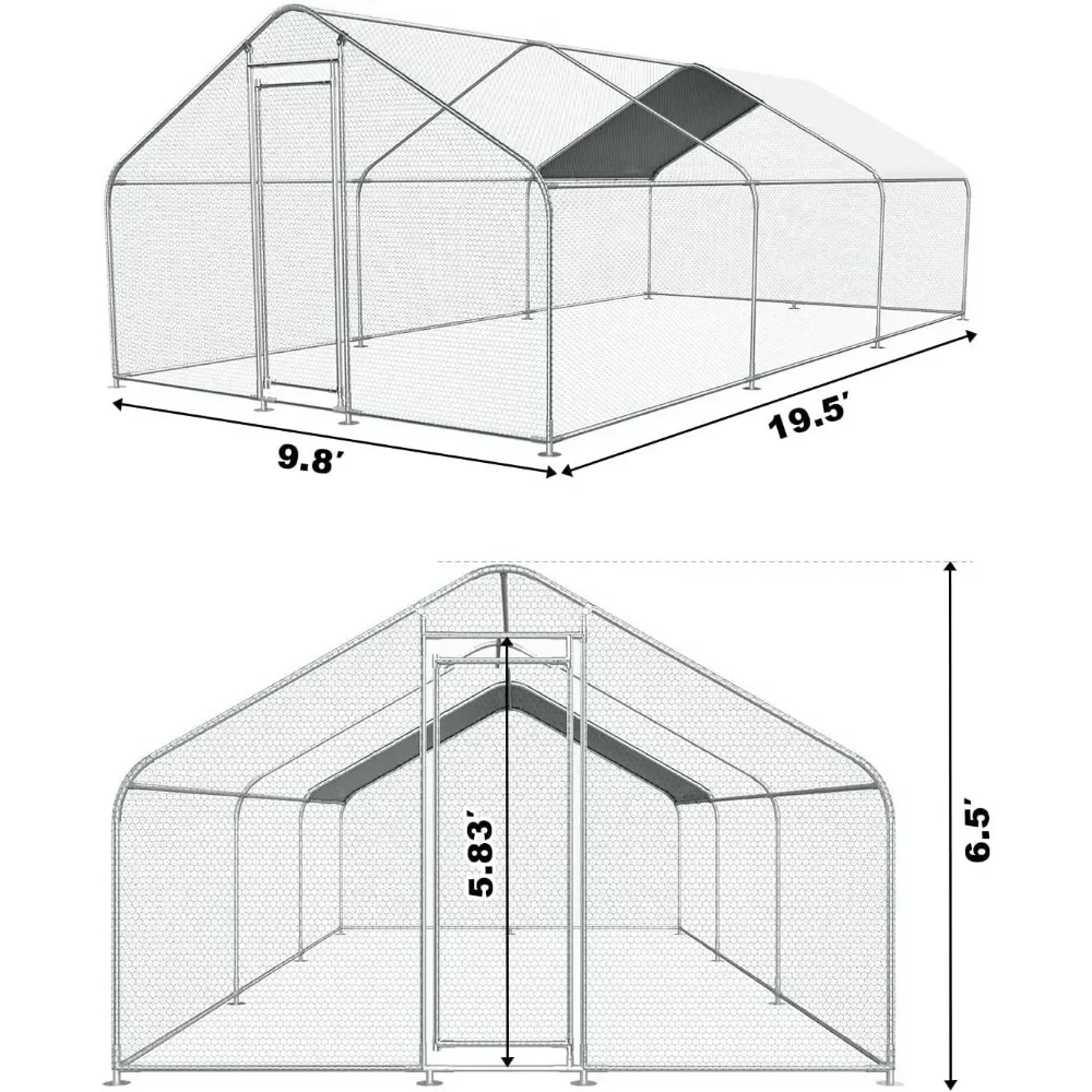 - 🐤【chicken coops for backyard and Farm】:The 1 room chicken coop size is 9.8′ L×6.5’W× 6.5’H. Featuring a heavy steel frame and full covrage PVC coated wire mesh that is too solid and durable to damage. Lockable steel door with a latch and steel wire ties for extra safety.
