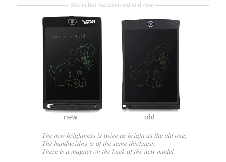 Notice:This kind of writing tablet is a new version tablet with screen lock button,adopts advanced technology which can be locked when you don't want to clear the words or pictures on the tablet,may be a different storage function,and also can prevent from clearing accidently.